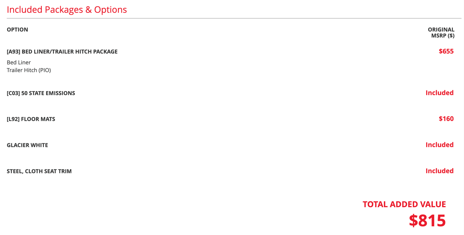 Inside- the Steel-colored cabin offers a contemporary and functional space- featuring the [j01] Moonroof Package that floods the interior with natural light for a refreshing driving experience. The [k03] Midnight Edition Package further elevates the interior with stylish touches- including exclusive floor mats and blacked-out trim elements. The [a93] Bed Liner/Trailer Hitch Package ensures hauling convenience- making it ideal for transporting everything from work tools to weekend recreational gear.