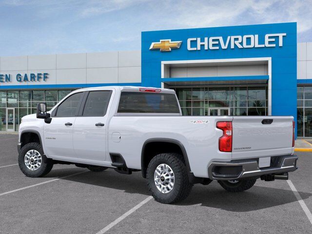 POWER OUTLET INTERIOR 120-VOLT (400 watts shared with (KC9) bed mounted power outlet),WHEELS 17 (43.2 CM) MACHINED ALUMINUM,TAILGATE GATE FUNCTION MANUAL WITH EZ LIFT includes power lock and release,LANE CHANGE ALERT WITH SIDE BLIND ZONE ALERT,SKID PLATES protect the oil pan front axle and transfer case,MIRRORS OUTSIDE POWER-ADJUSTABLE VERTICAL TRAILERING WITH HEATED AND AUTO-DIMMING UPPER GLASS lower convex mirrors turn signal indicators puddle lamps (U12) perimeter lighting auxiliary lighting power folding/manual extending (extends 3.31 [84.25mm]) Includes (DD8) auto-dimming rearview mirror.,LICENSE PLATE KIT FRONT,TRANSMISSION ALLISON 10-SPEED AUTOMATIC,DURABED PICKUP BED (STD),GOOSENECK/5TH WHEEL PREP PACKAGE Hitch platform to accept Gooseneck or 5th Wheel hitch. Includes hitch platform with tray to accept ball stamped bed holes with removable caps installed and bed mounted 7-pin trailer harness (similar to UY2 harness). Includes (CGN) Chevytec spray-on bedliner.,TIRES LT265/70R17E ALL-TERRAIN BLACKWALL,FRONT AND REAR PARK ASSIST ULTRASONIC,SIRIUSXM TRIAL SUBSCRIPTION,DEFOGGER REAR-WINDOW ELECTRIC,BED VIEW CAMERA camera in the CHMSL to show a view of the cargo bed display located in rearview mirror,CHEVYTEC SPRAY-ON BEDLINER Black (does not include spray-on liner on tailgate due to Black composite inner panel),MIRROR INSIDE REARVIEW AUTO DIMMING WITH PARTIAL VIDEO DISPLAY includes bed view camera view of cargo bed,BUMPER FRONT CHROME,SEATS FRONT 40/20/40 SPLIT-BENCH with covered armrest storage and under-seat storage (lockable) (STD),WINTER GRILLE COVER,UPFITTER SWITCH KIT (5) Provides 3-30 amp and 2-20 amp configurable circuits to facilitate installation of aftermarket electrical accessories.,ENGINE BLOCK HEATER,JET BLACK VINYL SEAT TRIM,SUMMIT WHITE,WORK TRUCK PREFERRED EQUIPMENT GROUP includes standard equipment,LOWERED GVWR 10 000 LBS. (4536 KG) lowers GVWR and significantly decreases towing and/or payload ratings,REAR AXLE 3.42 RATIO,REAR CROSS TRAFFIC ALERT,BUMPER REAR CHROME,WT/CX SAFETY PACKAGE includes (UD5) Front and Rear Park Assist (UKC) Lane Change Alert with Side Blind Zone Alert and (UFG) Rear Cross Traffic Alert Includes (V46) Chrome front bumper and (VJH) Chrome rear bumper.,EXHAUST BRAKE,POWER OUTLET BED MOUNTED 120-VOLT (400 watts shared with (KI4) interior power outlet),AUDIO SYSTEM CHEVROLET INFOTAINMENT 3 SYSTEM 7 diagonal HD color touchscreen AM/FM stereo Bluetooth audio streaming for 2 active devices voice command pass-through to phone Wireless Apple CarPlay and Wireless Android Auto compatibility (STD),ENGINE DURAMAX 6.6L TURBO-DIESEL V8 B20-Diesel compatible (470 hp [350.5 kW] @ 2800 rpm 975 lb-ft of torque [1322 Nm] @ 1600 rpm),ALTERNATOR 220 AMPS,TIRE SPARE LT265/70R17E ALL-TERRAIN BLACKWALL,Tow Hitch,Keyless Start,Locking/Limited Slip Differential,Four Wheel Drive,Tow Hooks,Power Steering,ABS,4-Wheel Disc Brakes,Steel Wheels,Tires - Front All-Season,Tires - Rear All-Season,Conventional Spare Tire,Daytime Running Lights,Automatic Highbeams,AM/FM Stereo,MP3 Capability,Bluetooth Connection,Auxiliary Audio Input,Smart Device Integration,Bluetooth Connection,Smart Device Integration,Bluetooth Connection,WiFi Hotspot,Split Bench Seat,Vinyl Seats,Pass-Through Rear Seat,Rear Bench Seat,Floor Mats,Adjustable Steering Wheel,Power Windows,Power Door Locks,Keyless Entry,Power Door Locks,Cruise Control,MP3 Capability,Auxiliary Audio Input,Power Outlet,A/C,Front Collision Mitigation,Front Collision Warning,Front Collision Mitigation,Traction Control,Stability Control,Daytime Running Lights,Driver Air Bag,Passenger Air Bag,Front Side Air Bag,Front Head Air Bag,Rear Head Air Bag,Passenger Air Bag Sensor,Telematics,Requires Subscription,Back-Up Camera,Lane Departure Warning,Front Collision Warning,Driver Restriction Features,Tire Pressure Monitor,Navigation System,Telematics,Requires Subscription