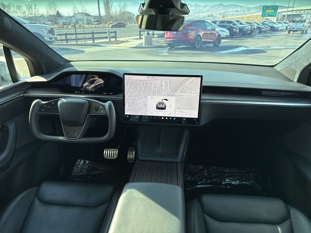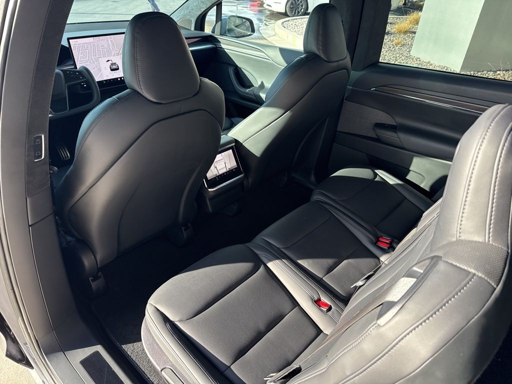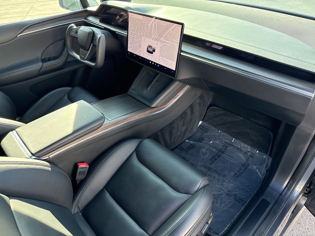 Spacious, premium interior with seating for 5, high-quality materials, and Teslas signature Falcon Wing doors for easy access in tight spaces.