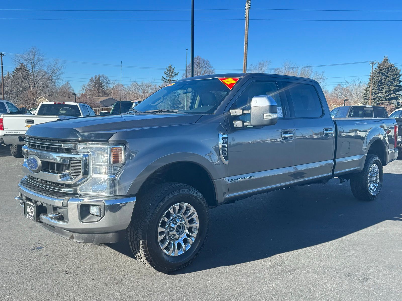 Gray 2022 Ford F-350SD XLT 4D Crew Cab 2022 4WD, 6'' Angular Bright Polished Step Bars, 8-Way Power Driver's Seat, ABS brakes, Alloy wheels, Autolock/Auto Unlock, Body-Color Door Handles w/Chrome Insert, Chrome Exhaust Tip, Compass, Electronic Stability Control, Electronic-Locking w/3.31 Axle Ratio, Halogen Fog Lamps, Heated door mirrors, Heated Driver & Passenger Seats, Illuminated entry, Low tire pressure warning, Remote keyless entry, Reverse Sensing System, SecuriCode Driver's Side Keyless Entry Keypad, Traction control, Unique Chrome Mirror Caps, Wheels: 18'' Chrome PVD Aluminum, XLT Premium Package. XLT 10-Speed Automatic Ford Power Stroke 6.7L V8 DI 32V OHV Turbodiesel F-350SD 4WD