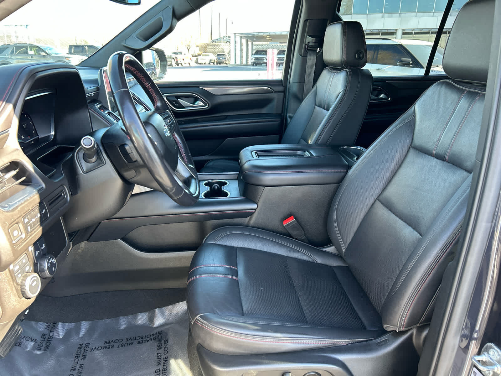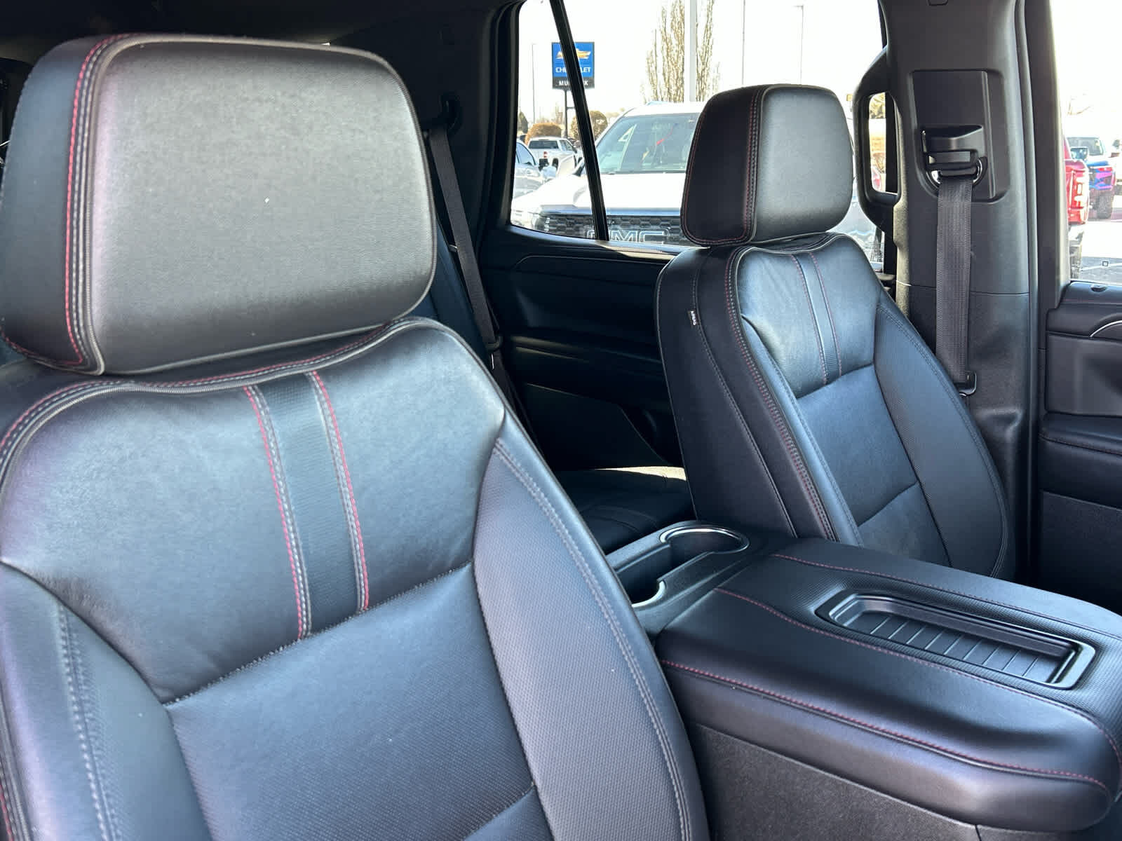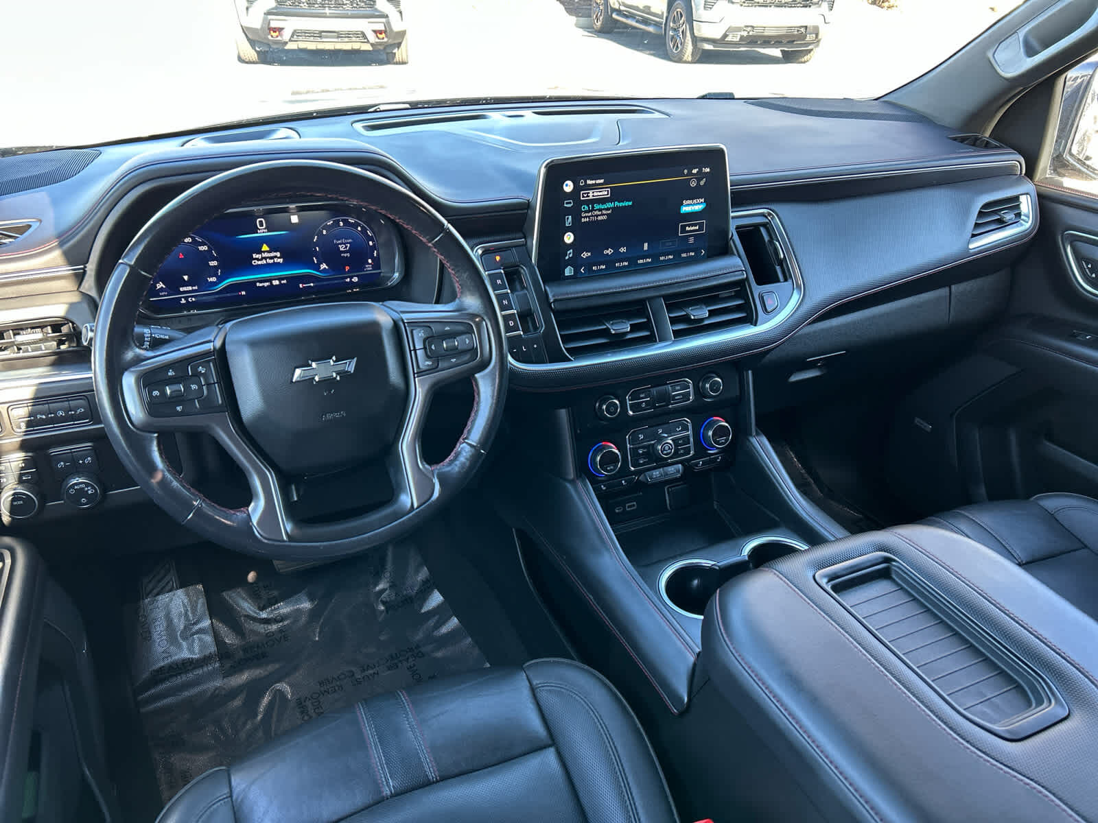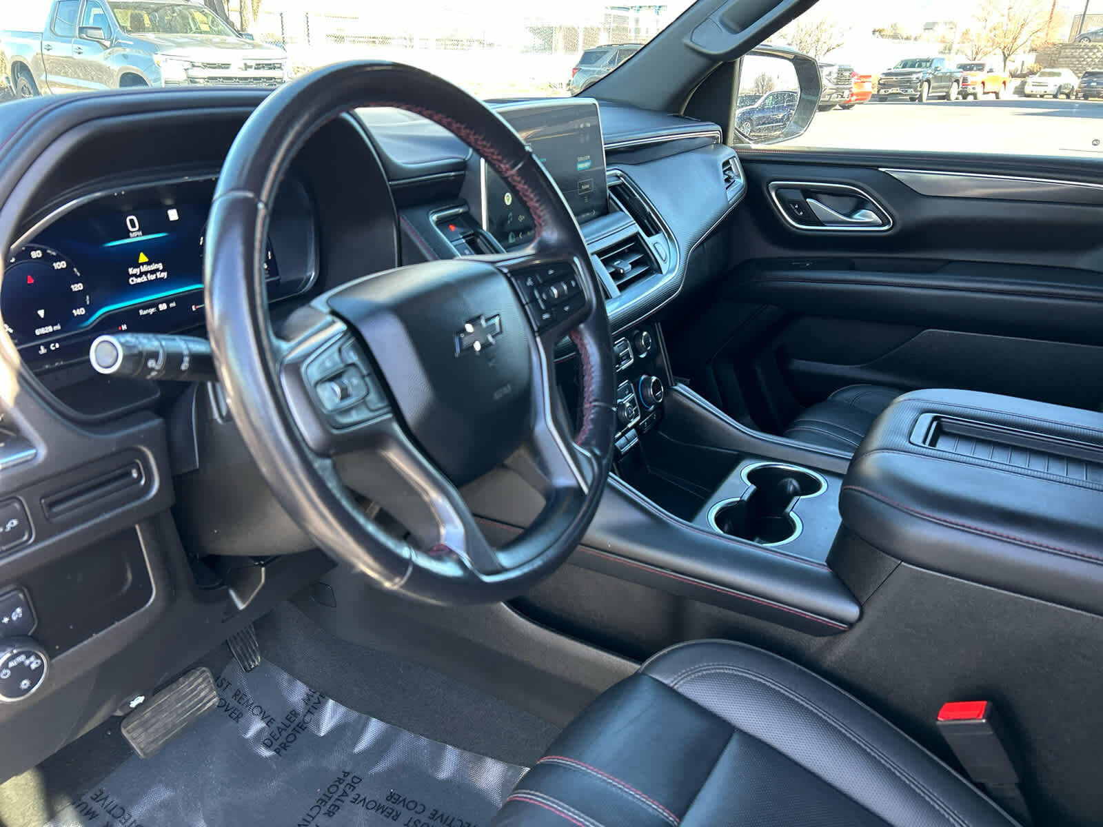 Leather Seats, Third Row Seat, Navigation, 4x4, Power Liftgate, Rear Air, Heated Driver Seat, Cooled Driver Seat Keyless Entry, Remote Trunk Release, Privacy Glass, Child Safety Locks. Chevrolet RST with Dark Ash Metallic exterior and Jet Black/Victory Red interior features a 8 Cylinder Engine with 355 HP at 5600 RPM*.