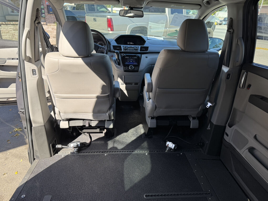 This 2014 Honda Odyssey EX-L was a standard, fully loaded van until 2020, when it was converted by United Access. Clean title and Carfax report in hand. 2-owners since new. The conversion includes a power wheelchair ramp on the passenger side and multiple adjustable anchors inside, as well as controls both up front and in the rear. Kneel, or lean feature with automatic tilt for easy entry and exit. Everything works great.