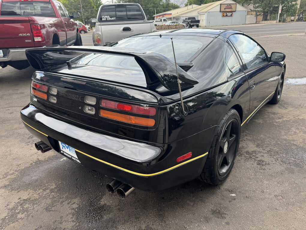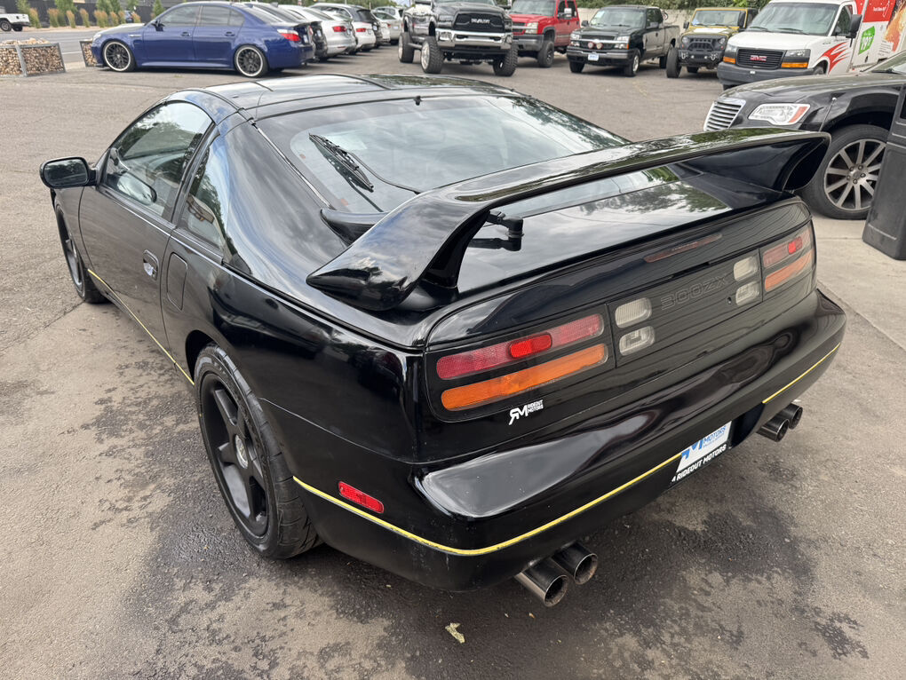 This specific example is a ONE-OWNER out of Southern California. 1994 Nissan 300ZX twin turbo. Clean title and Carfax report in hand. Only 78,136 miles! Runs and drives absolutely awesome, and has a ton of power. 300HP. Bone stock, never modified. Fires right up. T-tops that are in excellent shape including both leather sun shades. has no known issues or needed maintenance. The manual 5-speed transmission shifts smooth, and the clutch is very new. REAR STEER! Rolling on OZ Racing 17” wheels wrapped in 4 BRAND NEW Firestone Fire Hawk Indy 500 performance tires. Factory stainless quad tip exhaust. The black exterior is extremely straight with no body damage. Paint is quite good all around, especially for the age. Suspension, steering and brake components are great. Car drives down the road excellent.