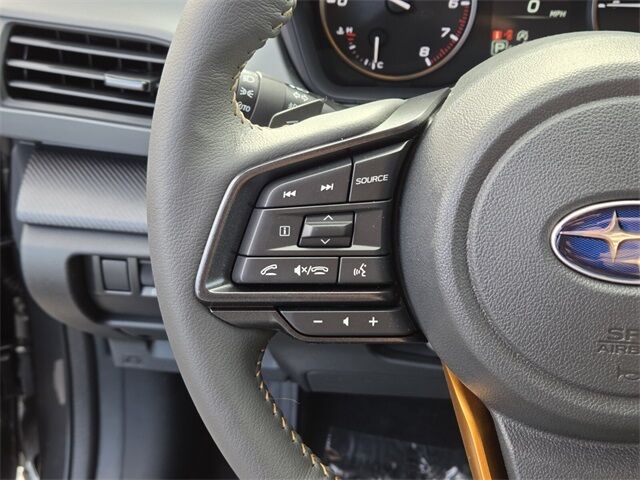 Exterior@Active grille shutters~Exterior@Daytime running lights~Exterior@Door handle color (body-color)~Exterior@Exhaust tip color (stainless steel)~Exterior@Exterior entry lights (approach lamps)~Exterior@Fender lip moldings (black)~Exterior@Front bumper color (black)~Exterior@Front fog lights (LED)~Exterior@Front wipers (variable intermittent)~Exterior@Grille color (black)~Exterior@Headlights (LED)~Exterior@Headlights (auto delay off)~Exterior@Headlights (auto high beam dimmer)~Exterior@Headlights (auto on/off)~Exterior@Headlights (cornering)~Exterior@Headlights (self-leveling)~Exterior@Headlights (wiper activated)~Exterior@Heated windshield wiper rests~Exterior@Laminated glass (acoustic windshield)~Exterior@Liftgate window (fixed)~Exterior@Mirror color (black)~Exterior@Power windows (safety reverse)~Exterior@Rear bumper color (black)~Exterior@Rear privacy glass~Exterior@Rear spoiler (roofline)~Exterior@Rear spoiler color (body-color)~Exterior@Rear trunk/liftgate (liftgate)~Exterior@Rear wiper (auto-on in reverse)~Exterior@Rear wiper (intermittent)~Exterior@Rear wiper (with washer)~Exterior@Rocker panel color (black)~Exterior@Roof rails (black)~Exterior@Side mirror adjustments (manual folding)~Exterior@Side mirror adjustments (power)~Exterior@Side mirrors (heated)~Exterior@Side mirrors (integrated turn signals)~Exterior@Window defogger (rear)~Exterior@Window trim (black)~Interior@Adaptive cruise control~Interior@Adaptive stop and go cruise control (semi-automatic)~Interior@Air filtration~Interior@Airbag deactivation (occupant sensing passenger)~Interior@Antenna type (diversity)~Interior@Antenna type (element)~Interior@Antenna type (mast)~Interior@Armrests (rear center with cupholders)~Interior@Armrests (rear folding)~Interior@Assist handle (front)~Interior@Assist handle (rear)~Interior@Autonomous lane guidance (lane centering)~Interior@Auxiliary audio input (Bluetooth)~Interior@Auxiliary audio input (USB)~Interior@Auxiliary audio input (iPod/iPhone)~Interior@Auxiliary audio input (jack)~Interior@Cargo area floor mat (rubber/vinyl)~Interior@Cargo area light~Interior@Cargo cover (retractable)~Interior@Center console (front console with armrest and storage)~Interior@Center console (illuminated)~Interior@Center console (organizer tray)~Interior@Center console trim (leatherette)~Interior@Connected in-car apps (Google POIs)~Interior@Connected in-car apps (Google search)~Interior@Connected in-car apps (SiriusXM Travel Link)~Interior@Connected in-car apps (Yelp)~Interior@Cupholders (front)~Interior@Cupholders (rear)~Interior@Dash trim (simulated carbon fiber)~Interior@Door trim (leatherette)~Interior@Door trim (metallic)~Interior@Driver assistance app (roadside assistance)~Interior@Driver seat (heated)~Interior@Driver seat manual adjustments (6)~Interior@Driver seat manual adjustments (height)~Interior@Driver seat manual adjustments (reclining)~Interior@Electronic messaging assistance (voice operated)~Interior@Electronic messaging assistance (with read function)~Interior@Floor mat material (rubber/vinyl)~Interior@Floor material (rubber/vinyl)~Interior@Floor mats (front)~Interior@Floor mats (rear)~Interior@Front air conditioning (automatic climate control)~Interior@Front air conditioning zones (dual)~Interior@Front airbags (dual)~Interior@Front headrests (2)~Interior@Front headrests (adjustable)~Interior@Front seat type (bucket)~Interior@Hands-free phone call integration (voice operated)~Interior@Heated steering wheel~Interior@Infotainment (Subaru Infotainment System)~Interior@Infotainment screen size (11.6 in.)~Interior@Internet radio app (AHA)~Interior@Internet radio app (iHeartRadio)~Interior@Knee airbags (driver)~Interior@Multi-function remote (keyless entry)~Interior@Multi-function remote (panic alarm)~Interior@Multi-function remote (trunk release)~Interior@One-touch windows (2)~Interior@Overhead console (front)~Interior@Passenger seat (heated)~Interior@Passenger seat manual adjustments (4)~Interior@Passenger seat manual adjustments (reclining)~Interior@Power outlet(s) (USB front)~Interior@Power outlet(s) (USB rear)~Interior@Power outlet(s) (USB-C front)~Interior@Power outlet(s) (USB-C rear)~Interior@Power outlet(s) (two 12V front)~Interior@Power steering (variable/speed-proportional)~Interior@Power windows (lockout button)~Interior@Push-button start~Interior@Radio (AM/FM)~Interior@Radio (HD radio)~Interior@Radio (touch screen display)~Interior@Radio (voice operated)~Interior@Radio data system~Interior@Reading lights (front)~Interior@Reading lights (rear)~Interior@Rear headrests (3)~Interior@Rear headrests (adjustable)~Interior@Rear seat folding (split)~Interior@Rear seat type (60-40 split bench)~Interior@Rearview mirror (manual day/night)~Interior@Satellite radio (SiriusXM)~Interior@Seat cushion airbags (passenger front)~Interior@Shift knob trim (leather)~Interior@Side airbags (front)~Interior@Side airbags (rear)~Interior@Side curtain airbags (front)~Interior@Side curtain airbags (rear)~Interior@Smart device app compatibility (MySubaru)~Interior@Smart device app function (engine start)~Interior@Smart device app function (horn/light operation)~Interior@Smart device app function (lock operation)~Interior@Smart device app function (maintenance scheduling)~Interior@Smart device app function (maintenance status)~Interior@Smart device app function (security event/collision alert)~Interior@Smart device app function (vehicle location)~Interior@Smartphone integration (wireless Android Auto)~Interior@Smartphone integration (wireless Apple CarPlay)~Interior@Speed sensitive volume control~Interior@Steering wheel (tilt and telescopic)~Interior@Steering wheel mounted controls (audio)~Interior@Steering wheel mounted controls (cruise control)~Interior@Steering wheel mounted controls (multi-function)~Interior@Steering wheel mounted controls (paddle shifter)~Interior@Steering wheel mounted controls (phone)~Interior@Steering wheel mounted controls (voice control)~Interior@Steering wheel trim (leather)~Inter