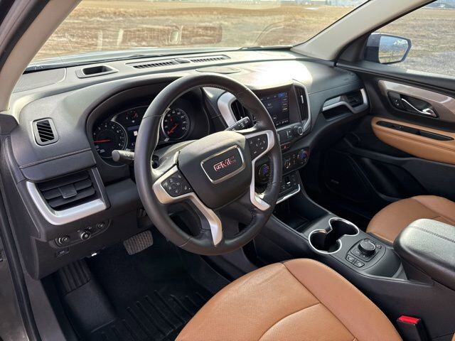 ADAPTIVE CRUISE CONTROL,AXLE 3.47 FINAL DRIVE RATIO,ENGINE 1.5L TURBO DOHC 4-CYLINDER SIDI VVT (170 hp [127.0 kW] @ 5600 rpm 203 lb-ft of torque [275.0 N-m] @ 2000 - 4000 rpm) (STD),LANE CHANGE ALERT WITH SIDE BLIND ZONE ALERT,AUDIO SYSTEM 8 DIAGONAL GMC INFOTAINMENT SYSTEM WITH NAVIGATION includes multi-touch display AM/FM/SiriusXM stereo Bluetooth streaming audio for music and most phones Android Auto and Apple CarPlay capability for compatible phones advanced voice recognition in-vehicle apps personalized profiles for infotainment and vehicle settings,SLT PREFERRED EQUIPMENT GROUP includes standard equipment,REAR PARK ASSIST,SAFETY ALERT SEAT,GMC PRO SAFETY PLUS includes (UKC) Lane Change Alert with Side Blind Zone Alert (UFG) Rear Cross Traffic Alert and (UD7) Rear Park Assist; in addition to standard (PDO) GMC Pro Safety (Also includes (KSG) Adaptive Cruise Control and (HS1) Safety Alert Seat.),BOSE SOUND SYSTEM PREMIUM 7-SPEAKER SYSTEM with amplifier in center console,TIRES P235/50R19 ALL-SEASON BLACKWALL,WHEELS 19 X 7.5 (48.3 CM X 19.1 CM) MACHINED ALUMINUM with Gray painted accents,BRANDY/JET BLACK PERFORATED LEATHER-APPOINTED SEAT TRIM,SEATS FRONT BUCKET (STD),RADIO HD,REAR CROSS TRAFFIC ALERT,INFOTAINMENT PACKAGE II includes (IOU) 8 diagonal GMC Infotainment System with navigation multi-touch display and AM/FM/SiriusXM stereo (UQA) Bose premium 7-speaker system and (U2L) HD Radio,TRANSMISSION 9-SPEED AUTOMATIC 9T45 ELECTRONICALLY-CONTROLLED WITH OVERDRIVE (STD),GRAPHITE GRAY METALLIC,Mirror Memory,Seat Memory,Lane Departure Warning,Lane Keeping Assist,Front Collision Mitigation,Front Collision Warning,Automatic Highbeams,Turbocharged,Keyless Start,All Wheel Drive,ABS,4-Wheel Disc Brakes,Aluminum Wheels,Tires - Front All-Season,Tires - Rear All-Season,Temporary Spare Tire,Luggage Rack,HID headlights,Automatic Headlights,Automatic Headlights,Fog Lamps,Privacy Glass,Heated Mirrors,Power Mirror(s),Integrated Turn Signal Mirrors,Remote Trunk Release,Power Liftgate,Hands-Free Liftgate,AM/FM Stereo,Satellite Radio,MP3 Capability,Bluetooth Connection,Smart Device Integration,Requires Subscription,Satellite Radio,Requires Subscription,Bluetooth Connection,WiFi Hotspot,Bucket Seats,Leather Seats,Heated Front Seat(s),Power Driver Seat,Driver Adjustable Lumbar,Driver Adjustable Lumbar,Power Passenger Seat,Passenger Adjustable Lumbar,Passenger Adjustable Lumbar,Pass-Through Rear Seat,Rear Bench Seat,Floor Mats,Floor Mats,Leather Steering Wheel,Steering Wheel Audio Controls,Heated Steering Wheel,Tire Pressure Monitor,Trip Computer,Power Windows,Power Windows,Power Windows,Power Door Locks,Keyless Entry,Power Door Locks,Security System,Remote Engine Start,Cruise Control,Universal Garage Door Opener,Security System,Power Outlet,MP3 Capability,Auxiliary Audio Input,Climate Control,Multi-Zone A/C,A/C,Auto-Dimming Rearview Mirror,Automatic Highbeams,Front Collision Mitigation,Front Collision Warning,Traction Control,Stability Control,Front Collision Mitigation,Daytime Running Lights,Driver Air Bag,Passenger Air Bag,Front Side Air Bag,Front Head Air Bag,Rear Head Air Bag,Passenger Air Bag Sensor,Back-Up Camera,Telematics,Requires Subscription,Front Collision Warning,Lane Departure Warning,Lane Keeping Assist,Driver Restriction Features,Tire Pressure Monitor