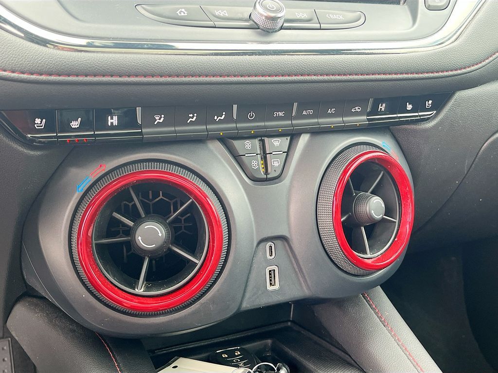 Explore the 2024 Chevrolet Blazer AWD RS at AutoSavvy Colorado Springs, a dynamic blend of performance and style. This sleek Black SUV, with just 37,681 miles, is powered by a robust 3.6L V-6 engine delivering 308 horsepower, ensuring a thrilling drive with the efficiency of 26 MPG on the highway. The sophisticated Jet Black interior with Red Accents offers a luxurious experience with leather front seat upholstery, dual-zone climate control, and a premium Bose 8-speaker audio system. Stay connected with the Chevrolet Infotainment 3 Premium System, featuring a 10.2-inch touchscreen, Apple CarPlay, and Android Auto. Safety meets convenience with Adaptive Cruise Control, Blind Spot Monitoring, and a suite of advanced driver assistance features. The current status of the title is branded, presenting a unique opportunity for savvy buyers to acquire a high-quality vehicle at a significant value. As a Savvy Certified vehicle, this Chevrolet Blazer comes with AutoSavvy's 4-month/4,500-mile warranty, providing peace of mind and assurance in your purchase. Visit AutoSavvy Colorado Springs today to explore the remarkable features and capabilities of the 2024 Chevrolet Blazer AWD RS. Don’t miss your chance to own this outstanding SUV that perfectly balances power, technology, and style.