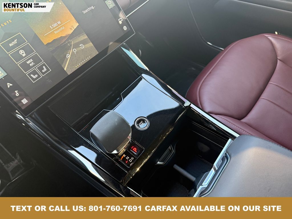 15 Speakers, 20-Way Elec Heated & Ventilated Fr Seats w/Memory, 3.6 Axle Ratio, 4-Wheel Disc Brakes, A/V remote, ABS brakes, Adaptive suspension, Air Conditioning, Alloy wheels, AM/FM radio: SiriusXM, Apple CarPlay & Android Auto, Auto High-beam Headlights, Auto tilt-away steering wheel, Auto-dimming door mirrors, Auto-dimming Rear-View mirror, Auto-leveling suspension, Automatic temperature control, Block heater, Brake assist, Bumpers: body-color, Child-Seat-Sensing Airbag, Compass, Delay-off headlights, Driver door bin, Driver vanity mirror, Driver's Seat Mounted Armrest, Dual front impact airbags, Dual front side impact airbags, Electronic Stability Control, Emergency communication system: InControl Protect, Exterior Parking Camera Rear, Four wheel independent suspension, Front anti-roll bar, Front Bucket Seats, Front Center Armrest w/Storage, Front dual zone A/C, Front fog lights, Front reading lights, Fully automatic headlights, Garage door transmitter: HomeLink, Headlight cleaning, Heated door mirrors, Heated front seats, Heated rear seats, Heated steering wheel, Illuminated entry, Leather Shift Knob, Leather steering wheel, Low tire pressure warning, Memory seat, Navigation system: InControl Navigation Pro, Occupant sensing airbag, Outside temperature display, Overhead airbag, Overhead console, Panic alarm, Passenger door bin, Passenger seat mounted armrest, Passenger vanity mirror, Perforated Windsor Leather Seat Trim, Power door mirrors, Power driver seat, Power Liftgate, Power moonroof, Power passenger seat, Power steering, Power windows, Radio data system, Radio: Meridian Sound System, Rain sensing wipers, Rear anti-roll bar, Rear fog lights, Rear reading lights, Rear seat center armrest, Rear window defroster, Rear window wiper, Remote keyless entry, Security system, Speed control, Speed-sensing steering, Speed-Sensitive Wipers, Split folding rear seat, Spoiler, Steering wheel memory, Steering wheel mounted audio controls, Tachometer, Telescoping steering wheel, Tilt steering wheel, Traction control, Trip computer, Turn signal indicator mirrors, Variably intermittent wipers, Ventilated front seats, and Wheels: 21'' Satin Dark Grey (Style 5126)