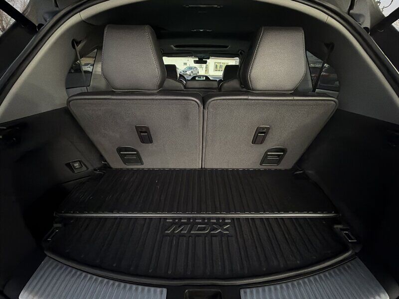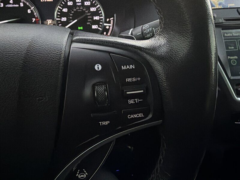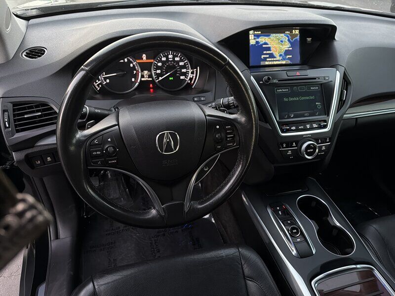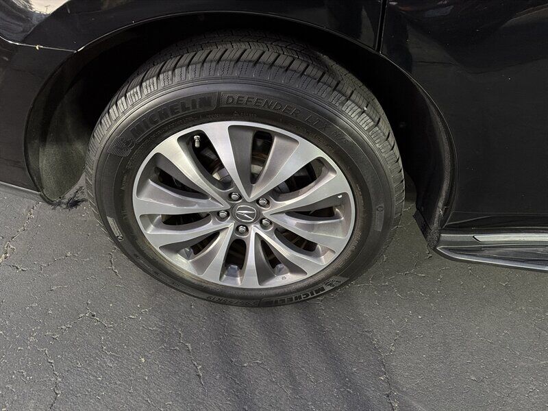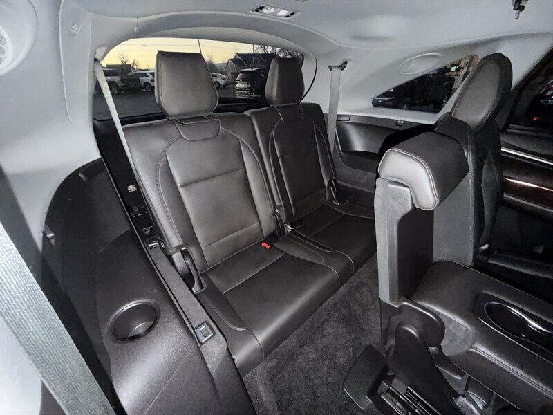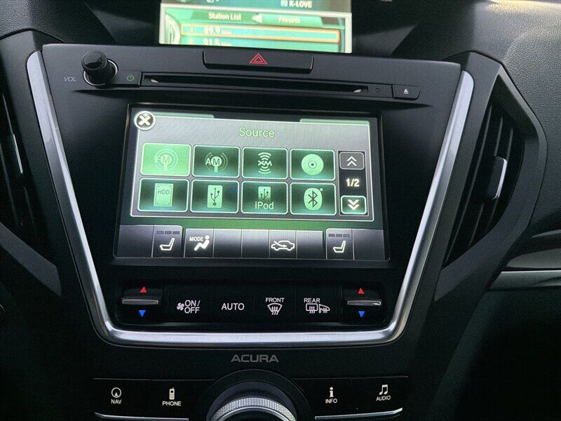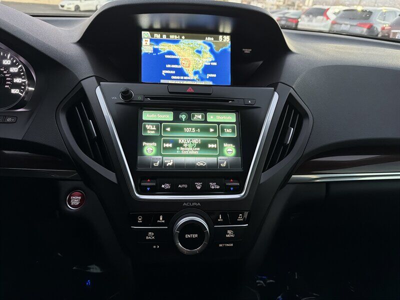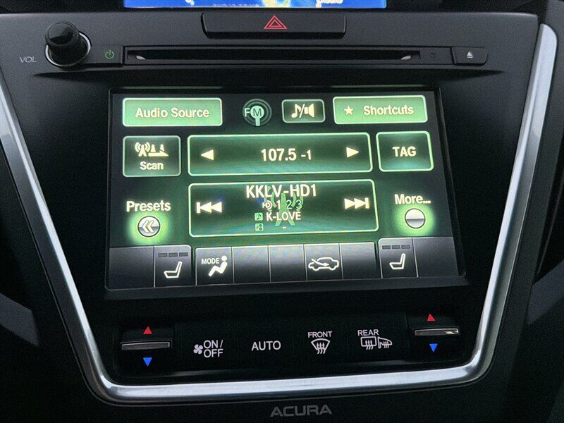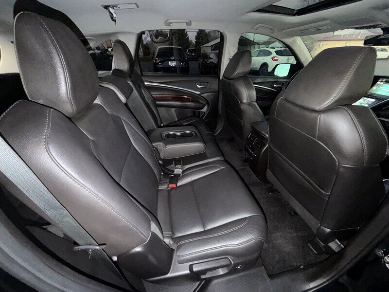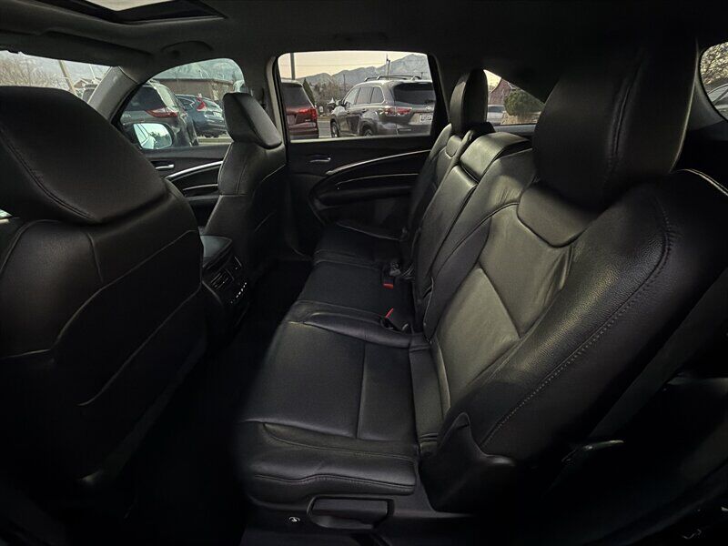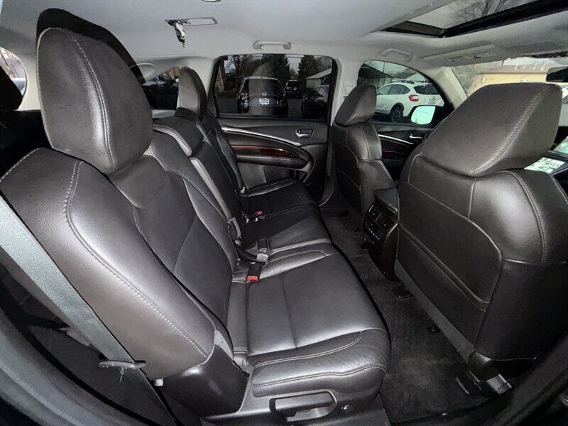 INSTALLED FEATURES: Air filtration, Front air conditioning: automatic climate control / sun sensor climate control, Front air conditioning zones: dual, Humidity/dewpoint sensors, Rear air conditioning: automatic climate control / independently controlled, Rear air conditioning zones: single, Airbag deactivation: occupant sensing passenger, Front airbags: dual, Knee airbags: driver, Side airbags: front, Side curtain airbags: front / rear / third row, Antenna type: diversity, Auxiliary audio input: Bluetooth / iPod/iPhone / jack / USB, Hard drive: 15GB, In-Dash CD: MP3 Playback / single disc, Internet radio app: AHA / Pandora, Premium brand: ELS Studio, Radio: AM/FM / HD radio / touch screen display / voice operated, Radio data system, Satellite radio: SiriusXM, Speed sensitive volume control, Subwoofer: 1, Total speakers: 9, ABS: 4-wheel, Braking assist, Cornering brake control, Electronic brakeforce distribution, Front brake type: ventilated disc, Power brakes, Rear brake type: disc, Armrests: rear center folding with storage / rear center with cupholders, Center console trim: simulated alloy / simulated wood, Door sill trim: aluminum, Door trim: simulated alloy / simulated wood, Floor mat material: carpet, Floor material: carpet, Floor mats: front / rear, Interior accents: woodgrain, Shift knob trim: leather, Steering wheel trim: leather, Ambient lighting, Assist handle: front / rear, Cargo area light, Center console: front console with armrest and storage, Cruise control, Cupholders: front / rear / third row, Easy entry: power rear seat, Footwell lights, Memorized settings: 2 driver / audio system / climate control / driver seat / side mirrors / steering wheel, Multi-function remote: proximity entry system / trunk release, One-touch windows: 4, Power outlet(s): two 12V front, Power steering: variable/speed-proportional, Power windows: lockout button, Push-button start, Reading lights: front, Rearview mirror: auto-dimming, Steering wheel: power tilt and telescopic, Steering wheel mounted controls: audio / cruise control / multi-function / paddle shifter / phone / voice control, Storage: cargo tie-down anchors and hooks / door pockets / front seatback / in floor, Universal remote transmitter: Homelink - garage door opener, Vanity mirrors: dual illuminating, Door handle color: chrome, Front bumper color: body-color, Grille color: chrome, Mirror color: body-color, Rear bumper color: body-color, Rear spoiler: roofline, Rear spoiler color: body-color, Rear trunk/liftgate: liftgate / power operated, Window trim: chrome, Infotainment: AcuraLink, Infotainment screen size: 7 in. and 8 in. (dual), Clock, Compass, Digital odometer, External temperature display, Fuel economy display: MPG / range, Gauge: tachometer, Multi-function display, Trip odometer, Warnings and reminders: low fuel level / low oil level / maintenance due, Daytime running lights: LED, Exterior entry lights: puddle lamps, Headlights: auto delay off / auto on/off / LED / wiper activated, Taillights: LED, Side mirror adjustments: power / reverse gear tilt, Side mirrors: heated / integrated turn signals, 4WD type: full time, Cylinder deactivation, Drive mode selector, Moonroof / Sunroof: anti-trapping / one-touch open/close / power glass / remotely operated / sliding sunshade / tilt/slide, Blind spot safety: sensor/alert, Camera system: rear multi-view, Child safety door locks, Child seat anchors: LATCH system, Cross traffic alert: rear, Crumple zones: front / rear, Lane deviation sensors, Pre-collision warning system: audible warning, Rearview monitor: in dash, Emergency locking retractors: front / rear, Front seatbelts: 3-point, Rear seatbelts: 3-point, Seatbelt force limiters: front, Seatbelt warning sensor: front, Third row seatbelts: 3-point, Driver seat: heated, Driver seat power adjustments: 10 / height / lumbar / reclining, Front headrests: 2 / adjustable, Front seat type: sport bucket, Passenger seat: heated, Passenger seat power adjustments: 8 / height / reclining, Rear headrests: 2 / adjustable, Rear seat: sliding, Rear seat folding: flat / split, Rear seat manual adjustments: reclining, Rear seat type: 60-40 split bench, Third row headrests: 2 / foldable, Third row seat folding: split, Third row seat type: 50-50 split bench, Upholstery: leather-trimmed, Anti-theft system: alarm / vehicle immobilizer, Power door locks: anti-lockout, Hill holder control, Stability control, Traction control, Trailer stability control, Front shock type: gas, Front spring type: coil, Front stabilizer bar: diameter 25 mm, Front struts: MacPherson, Front suspension classification: independent, Front suspension type: lower control arms, Rear shock type: gas, Rear spring type: coil, Rear stabilizer bar: diameter 26 mm, Rear suspension classification: independent, Rear suspension type: multi-link, Driver assistance app: roadside assistance, Electronic messaging assistance: voice operated, Hands-free phone call integration: voice operated, Navigation data: real time traffic, Navigation system: hard drive / voice operated, Satellite communications: voice guided directions, Wireless data link: Bluetooth, Spare tire mount location: underbody, Spare tire size: temporary, Spare wheel type: steel, Tire Pressure Monitoring System, Wheels: aluminum alloy, Front wipers: rain sensing / speed sensitive / variable intermittent, Laminated glass: acoustic front side / acoustic windshield, Liftgate window: fixed, Power windows: remotely operated / safety reverse, Rear privacy glass, Rear wiper: intermittent / with washer, Window defogger: rear