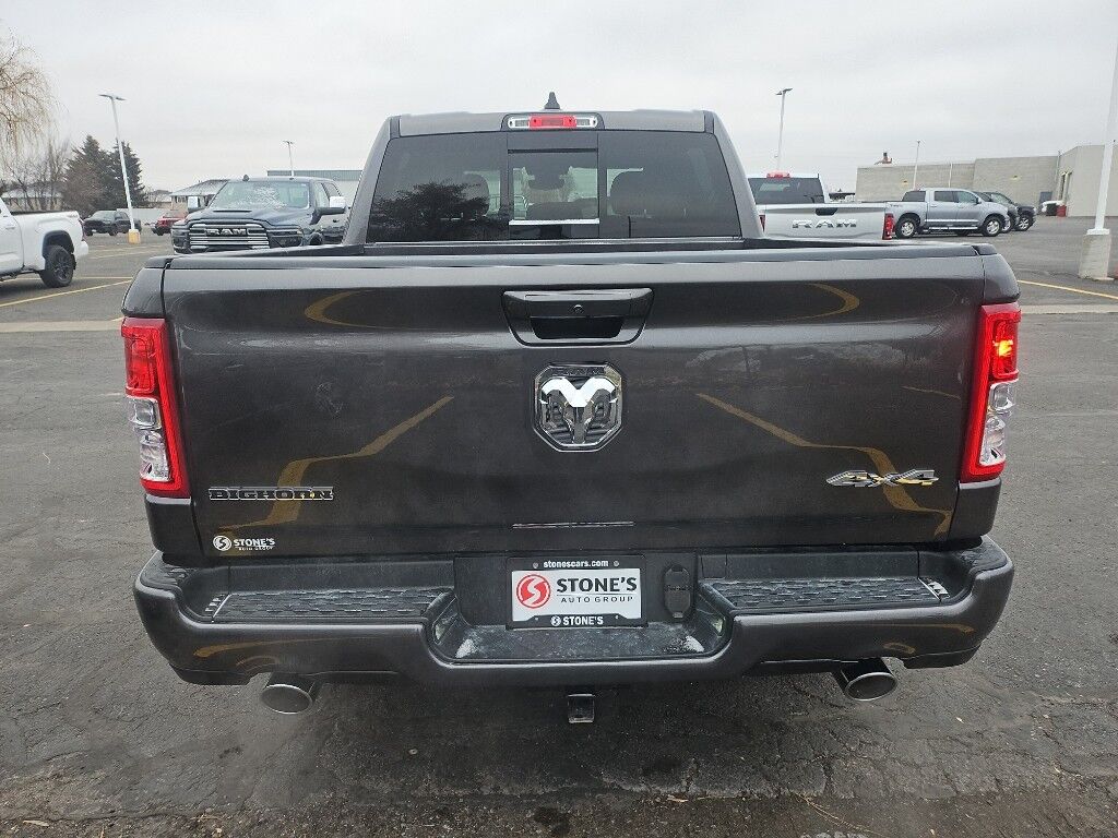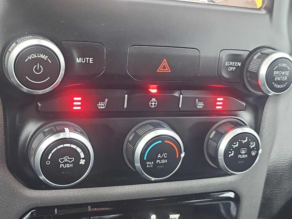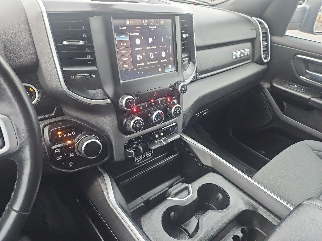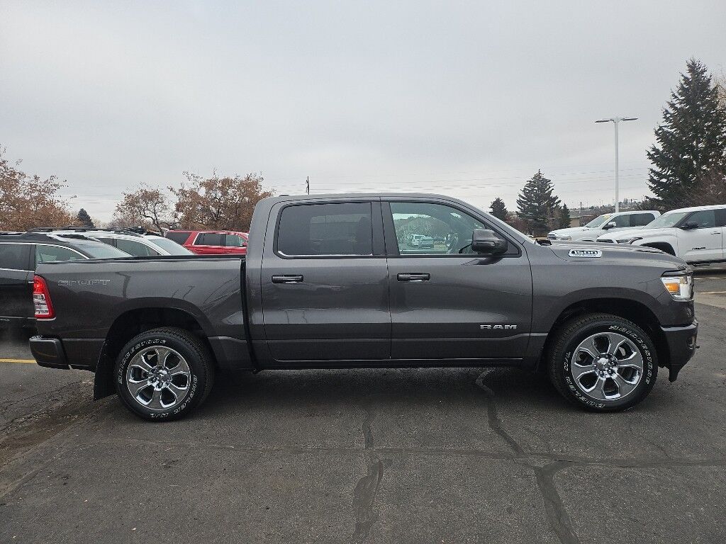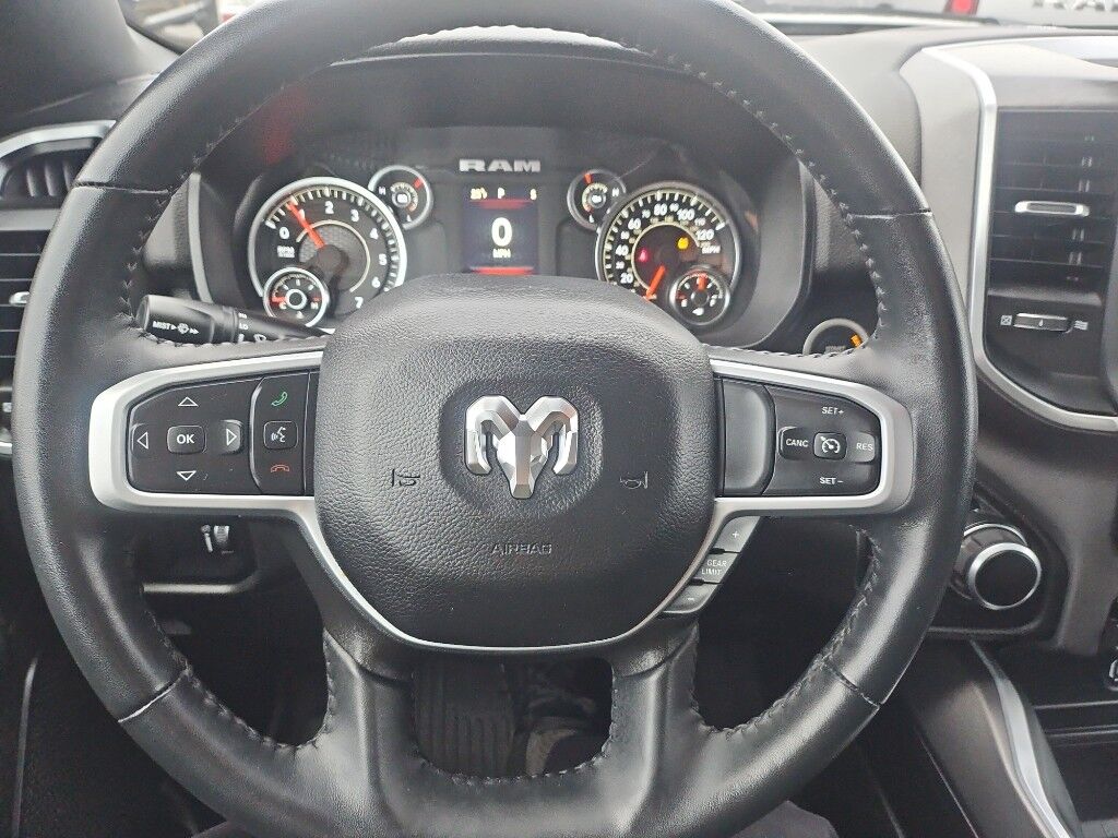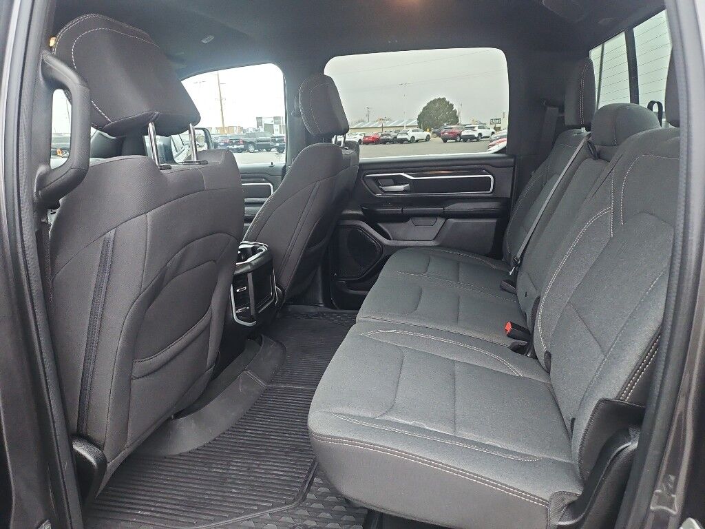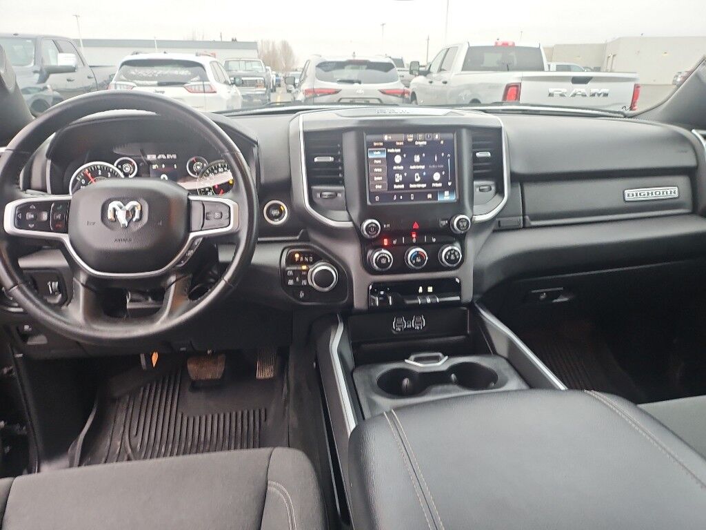 Quick Order Package 27Z Big Horn: Big Horn Badge,Big Horn Level 1 Equipment Group: Google Android Auto; Bluetooth Handsfree Phone and Audio; USB Host Flip; Rear Window Defroster; Integrated Center Stack Radio; Rear View Auto Dim Mirror; For Details, Visit DriveUconnect.com; For More Info, Call 800-643-2112; Rear Power Sliding Window; Rear Dome with On/off Switch Lamp; Front Fog Lamps; Connectivity - US/Canada; Glove Box Lamp; 4G LTE Wi-Fi Hot Spot; GPS Antenna Input; Exterior Mirrors with Heating Element; Auto Dim Exterior Driver Mirror; Heated Front Seats; Uconnect 5 W Radio with 8.4" Display; Heated Steering Wheel; 8.4" Touchscreen Display; Black Exterior Mirrors; Class IV Receiver Hitch; Black Premium Power Mirrors; Apple CarPlay; Big Horn Instrument Panel Badge; SiriusXM Satellite Radio; Exterior Mirrors with Supplemental Signals; Exterior Mirrors Courtesy Lamps; Passenger Sun Visor with Illuminated Mirror; Electric Shift on Demand Transfer Case; Power-Folding Mirrors; 2nd Row in Floor Storage Bins; Convex Wide-Angle Exterior Mirror Insert,Sport Appearance Package: 275/55R20 OWL All Season Tires; Deluxe Cloth Bucket Seats; Exterior Mirrors with Supplemental Signals; Body Color Premium Power Mirrors; Sport Decal; Body Color Door Handles; Exterior Mirrors Courtesy Lamps; RAM Grille Badge - Chrome; Exterior Mirrors with Heating Element; Auto Dim Exterior Driver Mirror; Body Color Exterior Mirrors; Grille Surround 1 Body Color Texture 2 Black; Black Interior Accents; Power-Folding Mirrors; Body Color Front Bumper; Convex Wide-Angle Exterior Mirror Insert; Body Color Rear Bumper with Step Pads,Quick Order Package 23Z Big Horn: Big Horn Badge,20" X 9" Aluminum Chrome Clad Wheels,9 Amplified Speakers with Subwoofer,Deluxe Cloth Bucket Seats,Trailer Brake Control,Granite Crystal Met CC,Granite Crystal Met CC,Remote Start System,MOPAR Front and Rear Rubber Floor Mats,Keyfob remote start,Heated steering wheel,Uconnect w/Bluetooth handsfree wireless device connectivity,Apple CarPlay/Android Auto smart device wireless mirroring,Heated driver and front passenger seats,Premium cloth front seat upholstery,Driver seat with 8-way directional controls,Front passenger seat with 4-way directional controls,8.4 inch primary display,4G LTE Wi-Fi Hot Spot mobile hotspot internet access,ParkView rear mounted camera,Brake assist system,Cruise control with steering wheel mounted controls,Primary monitor touchscreen,Part and full-time 4WD,HEMI 5.7L V-8 variable valve control, regular unleaded, engine with cylinder deactivation and 395HP,HEMI 5.7L V-8,Smart device remote start,Push-button,Active aerodynamics,Bluetooth wireless audio streaming,Smart key with push button start,Sentry Key immobilizer,Alpine speakers,Active noise cancellation,SiriusXM Guardian vehicle integrated emergency SOS system,Trailer brake controller,Trailer sway control,External memory control,Internet radio capability,5 USB ports,Electronic stability control system with anti-roll,Hill start assist,Rear Seat Reminder Alert rear seat check warning,Front fog lights,Leather steering wheel,Easy lower tailgate,Active grille shutters,Trailer hitch light,Manual rear child safety door locks,RAM App mobile app access,Regenerative brakes,Illuminated front beverage holders,Heated driver and passenger side door mirrors,Auto-dimming driver side mirror,Power folding door mirrors,Auto-dimming passenger side mirror,Gauge cluster display size: 3.50,Manual tilting steering wheel,Manual telescopic steering wheel,V8; HEMI; eTorque; 5.7 Liter,Automatic; 8-Spd,4WD,Hill Start Assist,Traction Control,Electronic Stability Control,ABS (4-Wheel),Keyless Entry,Push Button Start,Air Conditioning,Power Windows,Power Door Locks,Cruise Control,Power Steering,Tilt & Telescoping Wheel,AM/FM Stereo,SiriusXM Satellite,Navigation System,Bluetooth Wireless,Uconnect,Backup Camera,Dual Air Bags,Side Air Bags,F&R Head Curtain Air Bags,Daytime Running Lights,Towing Pkg,Oversized Premium Wheels 20" ,Power Seat,Bed Liner,Black