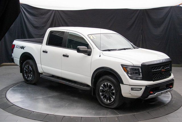 AUTO PRICES ARE THE LOWEST IN YEARS! INTEREST RATES ARE DROPPING! LOWER YOUR PAYMENT FOR THE FIRST TIME IN YEARS! NO PAYMENTS UNTIL JULY! 200 PRE-OWNED VEHICLES IN STOCK. AGGRESSIVE PRICING AVAILABLE WITH DEALER FINANCING. TIM DAHLE FOREVER WARRANTY. 100% LIFETIME POWERTRAIN WARRANTY INCLUDED. Tim Dahle vehicles with less than 60,000 miles, 6 years and newer, non-luxury or altered vehicles, come with a Lifetime Powertrain Warranty. There are NO dollar limitations to this warranty and it includes EVERYTHING powertrain including Turbos seals and gaskets. This warranty is valid in all fifty states. ALL At No Charge just for doing business with Tim Dahle Auto Group. Internet or advertised pricing not compatible with the deferred payment option. While we make every effort to ensure the data listed here is correct, there may be instances where some of the options or vehicle features may be listed incorrectly as we get data from multiple data sources. PLEASE MAKE SURE to confirm the details of this vehicle with the dealer to ensure its accuracy. Dealer cannot be held liable for data that is listed incorrectly. Not all vehicles qualify for the Forever Warranty. See Dealer for details. 2021 Nissan Titan PRO-4X in Glacier White, 4WD, 4-Wheel Disc Brakes, ABS brakes, All Season Floor Mats, AM/FM radio: SiriusXM, Auto-dimming Rear-View mirror, Auto-leveling suspension, Automatic temperature control, Blind Spot Warning, Brake assist, Cloth Seat Trim w/Vinyl Bolsters, Compass, Driver vanity mirror, Electronic Stability Control, Emergency communication system: NissanConnect Services, Front Bucket Seats, Front dual zone A/C, Front fog lights, Front reading lights, Front wheel independent suspension, Fully automatic headlights, Heated door mirrors, Leather steering wheel, Low tire pressure warning, Navigation system: NissanConnect Navigation, NissanConnect featuring Apple CarPlay and Android Auto, Off Road Protection Package, Outside temperature display, Overhead console, Passenger vanity mirror, Power door mirrors, Power driver seat, Radio: NissanConnect w/Navigation, Rain sensing wipers, Rear Parking Sensors, Remote keyless entry, Security system, Speed control, Speed-sensing steering, Speed-Sensitive Wipers, Split folding rear seat, Steering wheel mounted audio controls, Telescoping steering wheel, Tilt steering wheel, Traction control. 2021 Nissan Titan PRO-4X