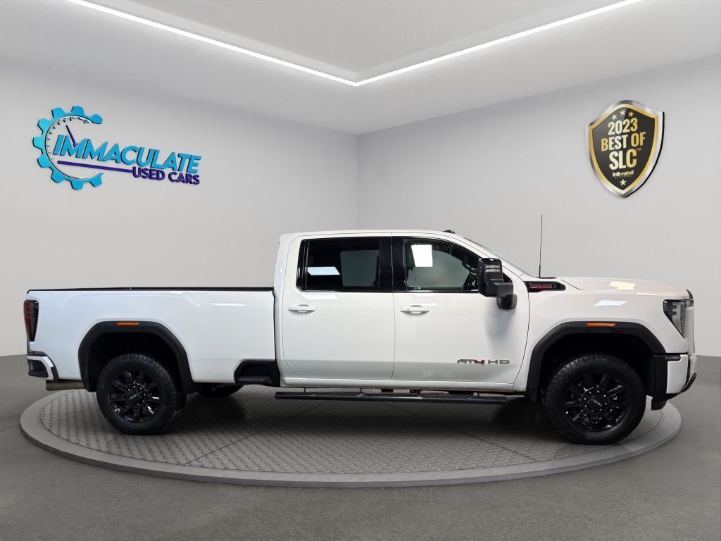 2025 GMC Sierra 3500HD AT4 Summit White 4WD 10-Speed Automatic Duramax 6.6L V8 Turbodiesel Heated/Ventilated Seats, Apple Car Play / Android Auto, Forward Collision Warning, Lane Departure Warning, 360 Back-up Camera, LONG BED, 10-Speed Automatic, 4WD, Jet Black With Kalahari Accents Leather, AT4 Preferred Package, Gooseneck/5th Wheel Prep Package, LED Smoked Amber Roof Marker Lamps, Power Sliding Rear Window w/Defogger, Universal Home Remote.