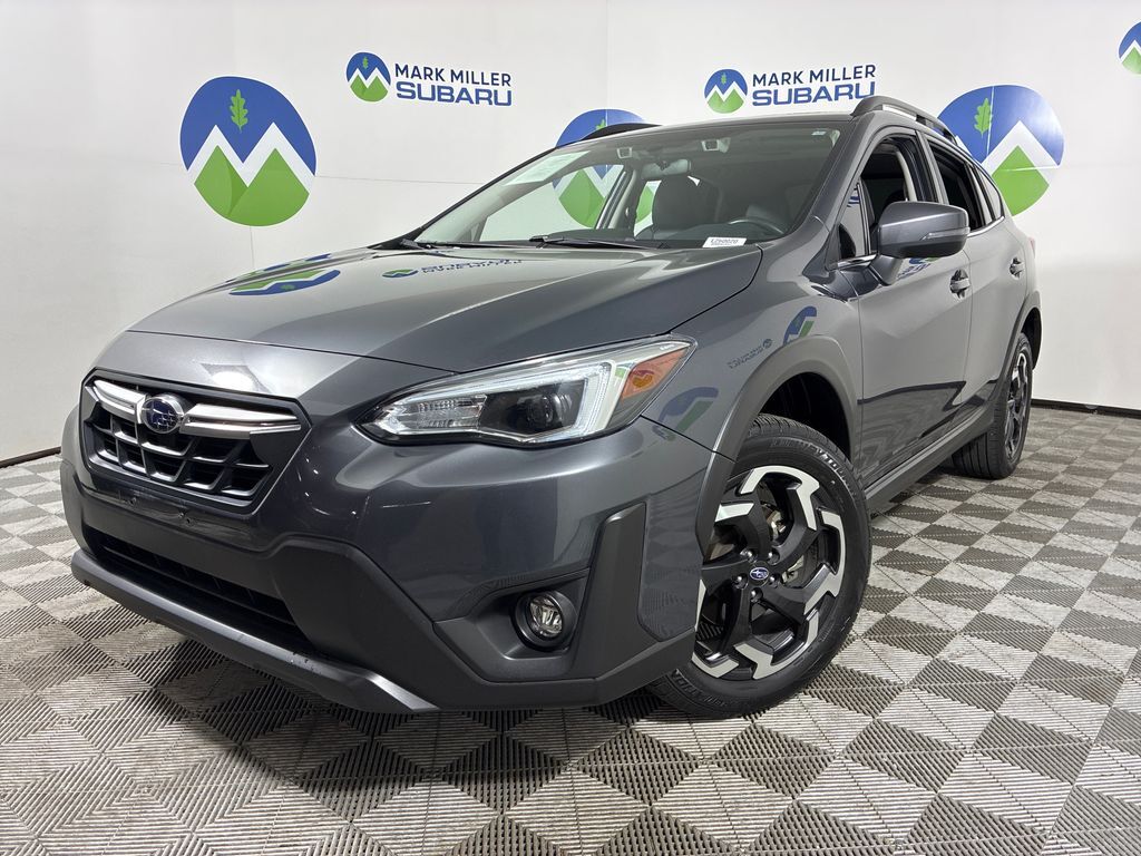 This 2023 Magnetite Gray Metallic Subaru Crosstrek Limited AWD is well equipped and includes these features and benefits: Moonroof Package (Power Moonroof), Subaru Certified Pre-Owned Certified, 3.70 Axle Ratio, 4-Wheel Disc Brakes, 6 Speakers, ABS brakes, Air Conditioning, All-Weather Floor Liners, Alloy wheels, AM/FM radio: SiriusXM, Anti-whiplash front head restraints, Auto High-beam Headlights, Automatic temperature control, Brake assist, Bumpers: body-color, CD player, Driver door bin, Driver vanity mirror, Dual front impact airbags, Dual front side impact airbags, Electronic Stability Control, Emergency communication system: STARLINK Safety and Security (Subscription Required), Exterior Parking Camera Rear, Four wheel independent suspension, Front anti-roll bar, Front Bucket Seats, Front Center Armrest, Front fog lights, Front reading lights, Fully automatic headlights, Heated door mirrors, Heated Front Bucket Seats, Heated front seats, Illuminated entry, Knee airbag, Leather-Trimmed Upholstery, Low tire pressure warning, Occupant sensing airbag, Outside temperature display, Overhead airbag, Overhead console, Panic alarm, Passenger door bin, Passenger vanity mirror, Power door mirrors, Power driver seat, Power steering, Power windows, Radio data system, Radio: Subaru STARLINK 8.0'' Multimedia Plus System, Rear anti-roll bar, Rear Bumper Cover, Rear seat center armrest, Rear window defroster, Rear window wiper, Remote keyless entry, Security system, Speed control, Speed-sensing steering, Split folding rear seat, Spoiler, STARLINK/Apple CarPlay/Android Auto, Steering wheel mounted audio controls, Tachometer, Telescoping steering wheel, Tilt steering wheel, Traction control, Trip computer, Turn signal indicator mirrors, Variably intermittent wipers, and Wheels: 18'' x 7.0J Alum Alloy Blk w/Machine Finish.