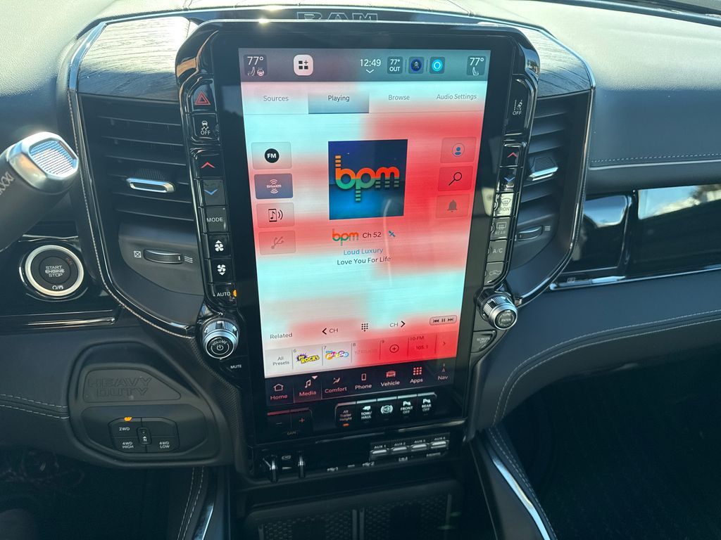 17 Speakers, 4-Wheel Disc Brakes, 50 Gallon Fuel Tank, 5th Wheel/Gooseneck Towing Prep Group, 6000# Front Axle with Hub Extension, ABS brakes, Active Lane Management System, Adaptive Steering System, Adjustable pedals, Air Conditioning, Alloy wheels, AM/FM radio: SiriusXM with 360L, Apple CarPlay/Android Auto, Audio memory, Auto High-beam Headlights, Auto Level Rear Air Suspension, Auto-dimming door mirrors, Auto-dimming Rear-View mirror, Automatic temperature control, Black Exterior Truck Badging, Black Limited Grille, Black Wheel Center Hub, Body Color Grille Surround, Bodyside moldings, Box and Rear Fender Clearance Lamps, Brake assist, Bumpers: body-color, Center Hub, Center Stop Lamp with Cargo View Camera, Clearance Lamps, Compass, Dash Pass Thru Wire Circuits, Delay-off headlights, Digital Rearview Mirror, Driver door bin, Driver vanity mirror, Drowsy Driver Detection, Dual front impact airbags, Dual front side impact airbags, Dual Rear Wheels, Electronic Stability Control, Engine Block Heater, Front anti-roll bar, Front Bucket Seats, Front Center Armrest w/Storage, Front dual zone A/C, Front fog lights, Front License Plate Bracket, Front reading lights, Fully automatic headlights, Garage door transmitter, Genuine wood console insert, Genuine wood dashboard insert, Genuine wood door panel insert, harman/kardon® Speakers, Heated door mirrors, Heated front seats, Heated rear seats, Heated steering wheel, Illuminated entry, Instrument Panel Mounted Auxiliary Switches, Leather steering wheel, LED Bed Lighting, Limited Level 1 Equipment Group, Low tire pressure warning, Manufacturer's Statement of Origin, Max Tow Package, Memory seat, MOPAR Spray in Bedliner, MOPAR Trailer Camera Wiring with No Camera, Navigation System, Nexen Brand Tires, Night Edition, Occupant sensing airbag, Outside temperature display, Overhead airbag, Overhead console, Panic alarm, ParkView Rear Back-Up Camera, Passenger door bin, Passenger vanity mirror, Pedal memory, Power Deployable Running Boards, Power door mirrors, Power driver seat, Power passenger seat, Power steering, Power windows, Quick Order Package 24M Limited, Radio data system, Radio: Uconnect 5 Nav with 14.4'' Display, Rain sensing wipers, Rear reading lights, Rear seat center armrest, Rear step bumper, Rear window defroster, Remote keyless entry, Security system, Speed control, Split folding rear seat, Sport Performance Hood, Steering wheel mounted audio controls, Surround View Camera System, Tachometer, Tilt steering wheel, Tow-Mode Camera (Wired), Tow-Mode Digital Rear View Mirror Package, Traction control, Traffic Sign Recognition, Trailer Reverse Guidance, Trailer Tire Pressure Monitoring System, Trip computer, Turn signal indicator mirrors, Ultra Premium Leather Seats, Variably intermittent wipers, Ventilated front seats, Voltmeter, Wheels: 17'' x 6.0'' Black Machined Aluminum DRW, Wheels: 17'' x 6.0'' Polished Aluminum, Wheels: 20'' x 8.0'' Diamond Cut Aluminum with Black Pt Pockets. Price includes: $1000 - 2026 National Bonus Cash . Exp. 04/30/2026