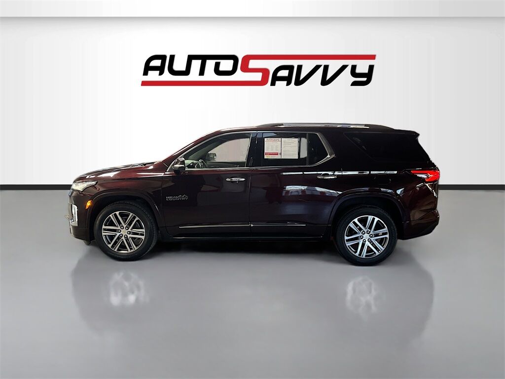 Discover the sophistication and power of the 2022 Chevrolet Traverse AWD High Country at AutoSavvy Woods Cross. This Black Cherry Metallic SUV offers a seamless blend of luxury and performance with only 57,300 miles on the odometer. Under the hood, the robust 3.6L V-6 engine delivers 310 horsepower, paired with a 9-speed automatic transmission for a smooth and dynamic drive. Enjoy the premium features like the Bose 10-speaker audio system, Apple CarPlay, Android Auto, and a dual sunroof that elevates your driving experience. The Jet Black and Clove leather interior is equipped with ventilated and heated front seats, ensuring comfort in every season, while the hands-free power liftgate adds convenience to your daily routine. The current status of the title is branded, reflecting AutoSavvy's commitment to transparency and quality assurance. Each vehicle undergoes a meticulous inspection to ensure reliability and performance, offering you peace of mind on the road. Visit AutoSavvy Woods Cross today to explore the unparalleled blend of innovation, style, and power that the 2022 Chevrolet Traverse AWD High Country offers. Experience the AutoSavvy difference, where every vehicle is crafted to exceed your expectations.