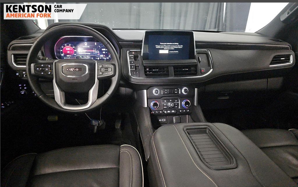 2 Presets For Power Driver Seat, 3.23 Rear Axle Ratio, 3rd row seats: split-bench, 4-Wheel Disc Brakes, 9 Speakers, ABS brakes, Air Conditioning, Alloy wheels, AM/FM radio: SiriusXM with 360L, AM/FM Stereo, Apple CarPlay/Android Auto, Auto High-beam Headlights, Auto-dimming Rear-View mirror, Automatic Emergency Braking, Automatic temperature control, Bodyside moldings, Bose 9-Speaker Stereo Audio System Feature, Brake assist, Bright Chrome Bodyside Moldings, Bright Front & Rear Door Sill Plates, Bumpers: body-color, Chrome Door Handles w/Body-Color Strip, Compass, Delay-off headlights, Driver door bin, Driver vanity mirror, Dual front impact airbags, Dual front side impact airbags, Electronic Stability Control, Emergency communication system: OnStar and GMC connected services capable, Following Distance Indicator, Forward Collision Alert, Four wheel independent suspension, Front & Rear Park Assist, Front anti-roll bar, Front Bucket Seats, Front Center Armrest, Front dual zone A/C, Front fog lights, Front Pedestrian Braking, Front reading lights, Fully automatic headlights, Garage door transmitter, Hands-Free Power Programmable Rear Liftgate, Heated & Ventilated Driver & Front Passenger Seats, Heated door mirrors, Heated Driver & Front Passenger Seats, Heated front seats, Illuminated entry, Inside Rear-View Auto-Dimming Mirror, IntelliBeam Automatic High Beam On/Off, Lane Change Alert w/Side Blind Zone Alert, Lane Keep Assist w/Lane Departure Warning, Low tire pressure warning, Memory seat, Navigation System, Occupant sensing airbag, Outside temperature display, Overhead airbag, Overhead console, Panic alarm, Passenger door bin, Passenger vanity mirror, Perforated Leather-Appointed Seating, Power door mirrors, Power driver seat, Power Liftgate, Power passenger seat, Power steering, Power windows, Premium Smooth Ride Suspension, Rain sensing wipers, Rear air conditioning, Rear anti-roll bar, Rear Cross Traffic Alert, Rear reading lights, Rear seat center armrest, Rear window defroster, Rear window wiper, Remote keyless entry, Roof rack: rails only, Safety Alert Seat, Security system, SiriusXM w/360L, Speed control, Speed-sensing steering, Split folding rear seat, Spoiler, Steering wheel mounted audio controls, Tachometer, Telescoping steering wheel, Tilt steering wheel, Traction control, Trip computer, Universal Home Remote, Variably intermittent wipers, Ventilated front seats, Voltmeter, Wheels: 20'' x 9'' 6-Spoke Polished Aluminum, and Wireless Charging.