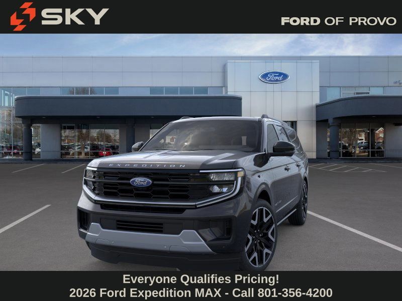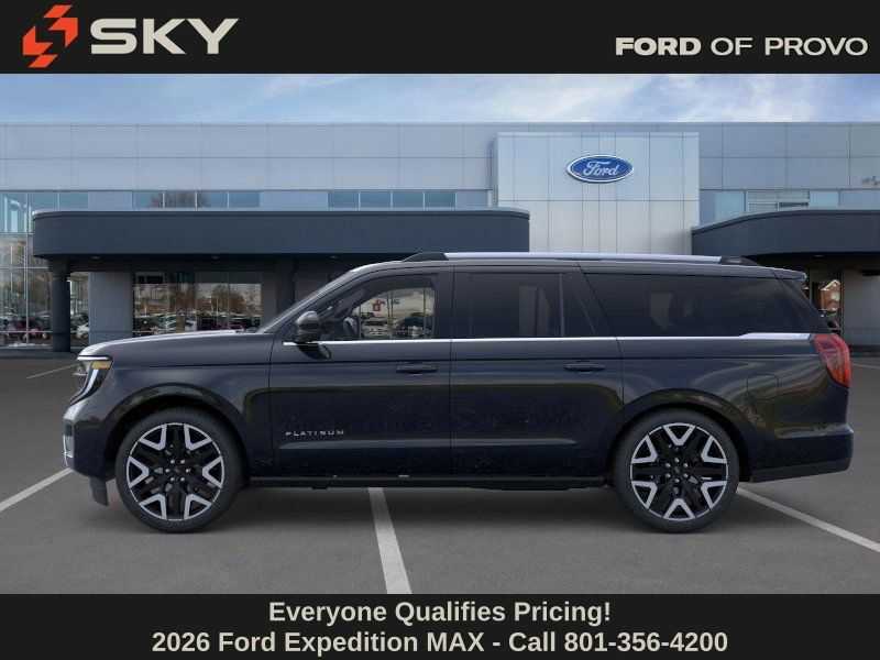 This 2026 Agate Black Metallic Ford Expedition Max Platinum 4WD is well equipped and includes these features and benefits: Ford Connectivity Package (1-Year Included), 10 Speakers, 2nd Row Power-Folding Captain's Chairs, 3.73 Axle Ratio, 3rd row seats: split-bench, 4-Wheel Disc Brakes, ABS brakes, Air Conditioning, Alloy wheels, AM/FM radio: SiriusXM with 360L, Apple CarPlay/Android Auto, Auto High-beam Headlights, Auto-dimming door mirrors, Auto-dimming Rear-View mirror, Automatic temperature control, Brake assist, Bumpers: body-color, Compass, Delay-off headlights, Driver door bin, Driver vanity mirror, Dual front impact airbags, Dual front side impact airbags, Electronic Stability Control, Emergency communication system: 911 Assist, Exterior Parking Camera Rear, Ford Digital Experience, Four wheel independent suspension, Front anti-roll bar, Front Bucket Seats, Front Center Armrest, Front dual zone A/C, Front reading lights, Fully automatic headlights, Garage door transmitter, Genuine wood dashboard insert, Genuine wood door panel insert, Heated and Ventilated Leather Front Captain's Chairs, Heated door mirrors, Heated front seats, Heated rear seats, Heated steering wheel, Illuminated entry, Leather steering wheel, Low tire pressure warning, Memory seat, Navigation System, Occupant sensing airbag, Outside temperature display, Overhead airbag, Overhead console, Panic alarm, Passenger door bin, Passenger vanity mirror, Power door mirrors, Power driver seat, Power moonroof: Vista Roof, Power passenger seat, Power steering, Power windows, Radio data system, Radio: B&O Sound System by Bang and Olufsen, Rain sensing wipers, Rear air conditioning, Rear anti-roll bar, Rear reading lights, Rear window defroster, Rear window wiper, Reclining 3rd row seat, Remote keyless entry, Security system, SiriusXM with 360L, Speed control, Speed-sensing steering, Speed-Sensitive Wipers, Split folding rear seat, Spoiler, Steering wheel memory, Steering wheel mounted audio controls, Tachometer, Telescoping steering wheel, Tilt steering wheel, Traction control, Trip computer, Turn signal indicator mirrors, Variably intermittent wipers, Ventilated front seats, Voltmeter, and Wheels: 20'' x 8.5'' Ebony Bright Machined Aluminum.