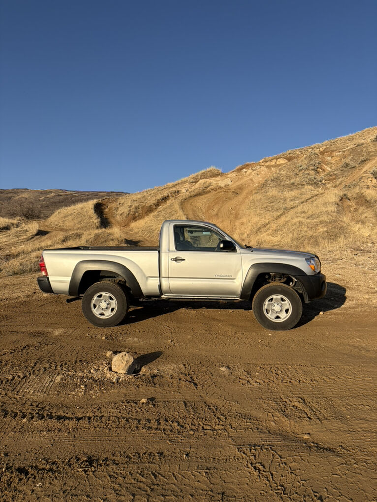 2008 Toyota Tacoma regular cab, 2-door, 4WD, manual transmission. ~172k miles. 2” lift on Bilstein 5100s, brand new Cooper tires. New slave and master clutch cylinders, new headlights, fresh oil change, and regular maintenance throughout. Apple CarPlay head unit.