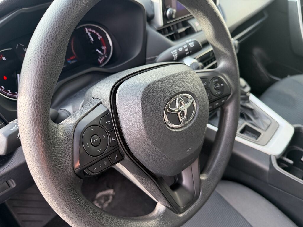 This 2024 Toyota RAV4 LE AWD delivers the perfect balance of efficiency, safety, and everyday versatility. Powered by a 2.5L 4-cylinder engine paired with an 8-speed automatic transmission, it offers smooth performance and excellent fuel economy while Toyota’s All-Wheel Drive with Multi-Terrain Select provides confident traction in rain, snow, and light off-road conditions. With an impressive 30 MPG combined, it’s built for both daily commuting and long road trips. Safety is a standout thanks to Toyota Safety Sense™ 2.5, featuring pre-collision braking with pedestrian detection, lane departure alert with steering assist, dynamic radar cruise control, lane tracing assist, automatic high beams, and a backup camera. Inside, you’ll find a modern cabin with Toyota Audio Multimedia, Apple CarPlay® and Android Auto™ compatibility, fabric-trimmed seating, multiple USB ports, and remote keyless entry. Finished in Ice Cap and backed by Toyota’s renowned reliability and 5-star safety ratings, this RAV4 LE AWD is a smart, dependable SUV ready for whatever your day brings.