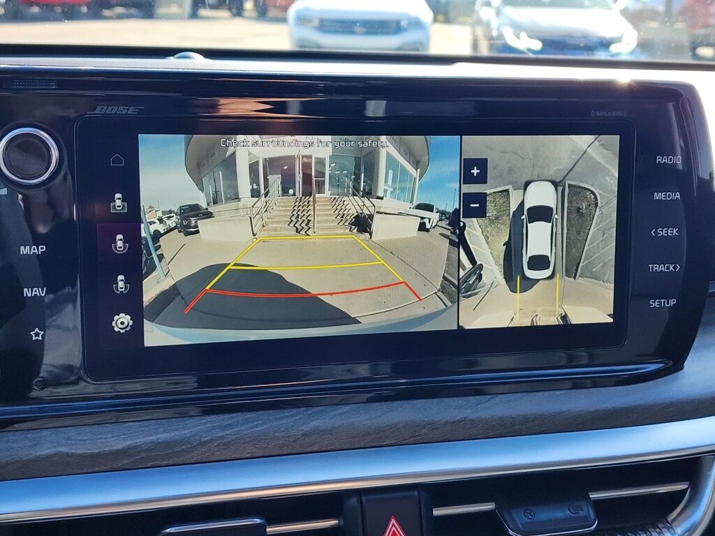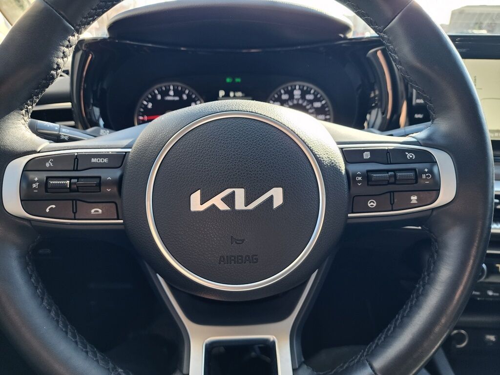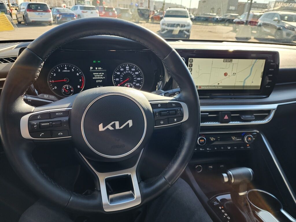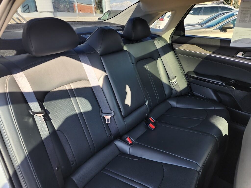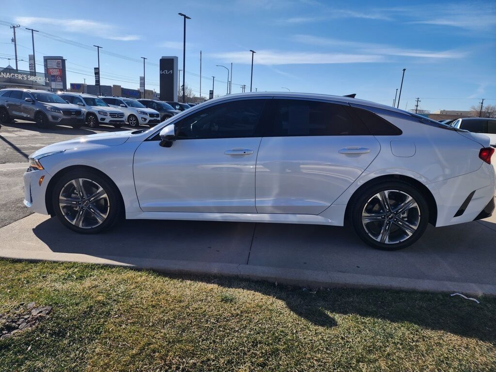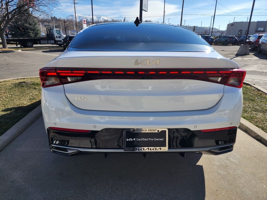 CARFAX One-Owner. Clean CARFAX. Certified. Glacial White Pearl 2023 Kia K5 EX FWD 8-Speed Automatic 1.6L I4 DGI Turbocharged DOHC 16V LEV3-ULEV70 180hp Kia Certified Pre-Owned Certified, 4-Wheel Disc Brakes, 6 Speakers, ABS brakes, Active Sound Design, Air Conditioning, Alloy wheels, AM/FM radio: SiriusXM, Apple CarPlay & Android Auto, Auto High-beam Headlights, Auto Up/Down Rear Windows, Automatic temperature control, Bose Premium Audio, Brake assist, Bumpers: body-color, Cargo Mat, Cargo Net, Carpeted Floor Mats, Delay-off headlights, Driver door bin, Driver vanity mirror, Dual front impact airbags, Dual front side impact airbags, Electronic Stability Control, Emergency communication system, EX Premium Package, Forward Collision Avoidance-Assist, Four wheel independent suspension, Front anti-roll bar, Front Bucket Seats, Front Center Armrest, Front dual zone A/C, Front reading lights, Fully automatic headlights, Heated & Ventilated Front Bucket Seats, Heated door mirrors, Heated front seats, Heated Steering Wheel, Highway Driving Assist, Illuminated entry, Knee airbag, LED Rear Combination Lamps, Low tire pressure warning, Memory Driver's Seat & Outside Mirrors, Navigation System, Navigation-Based Smart Cruise Control - Curve, Occupant sensing airbag, Outside temperature display, Overhead airbag, Overhead console, Panic alarm, Parking Collision Avoidance-Assist - Reverse, Parking Distance Warning - Forward & Reverse, Passenger door bin, Passenger vanity mirror, Power Child Lock, Power door mirrors, Power driver seat, Power Folding Outside Mirrors w/LED Turn Signals, Power Front Passenger Seat, Power moonroof, Power steering, Power windows, Radio data system, Radio: AM/FM/MP3 Audio System, Rear anti-roll bar, Rear reading lights, Rear seat center armrest, Rear side impact airbag, Rear window defroster, Remote keyless entry, Safe Exit Assist w/Lock, Security system, Smart Cruise Control w/Stop & Go, Smart Key w/ Push Button and Remote Start, Speed control, Speed-sensing steering, Split folding rear seat, Steering wheel mounted audio controls, Surround View Monitor, SynTex Seat Trim, Tachometer, Telescoping steering wheel, Tilt steering wheel, Traction control, Trip computer, Variably intermittent wipers, Ventilated front seats, Wheels: 18'' Gray Machined Finish Alloy.