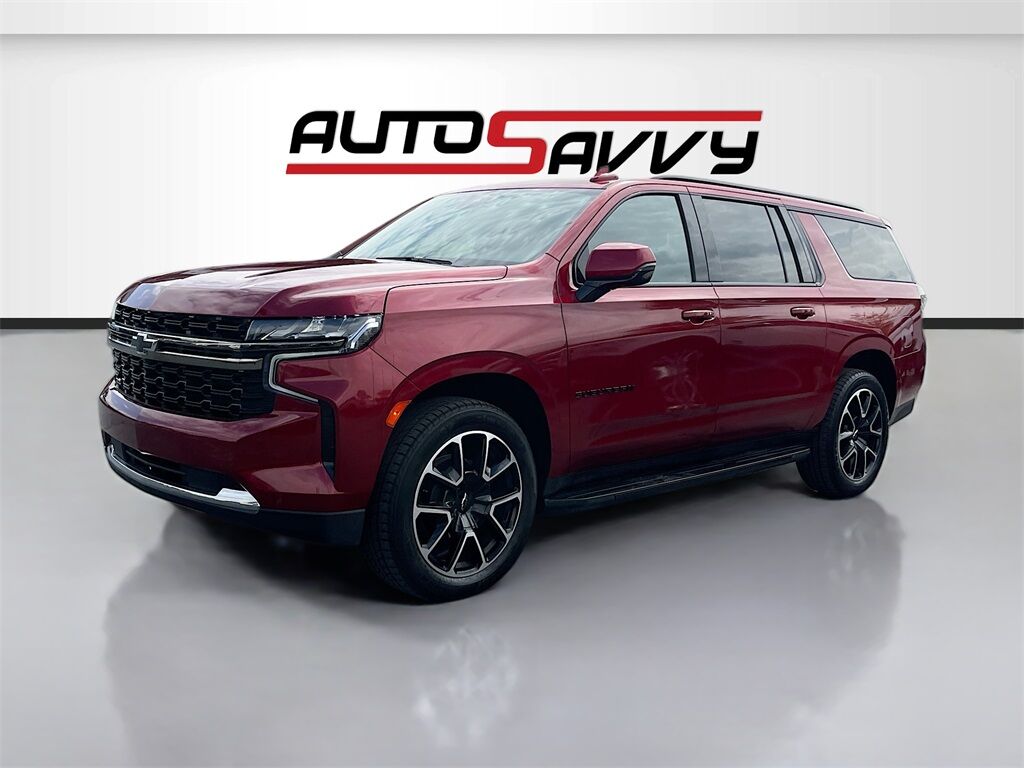 Discover the 2023 Chevrolet Suburban 4WD RST at AutoSavvy Lindon, a standout in Radiant Red Tintcoat with only 24,328 miles. This luxury SUV combines power and sophistication, featuring an EcoTec3 5.3L V-8 engine that generates 355HP, paired with a 10-speed automatic transmission for seamless driving. Enjoy premium amenities like a dual-pane panoramic sunroof, leather seats in Jet Black/Victory Red, and heated front and second-row seats. Stay connected with Apple CarPlay, Android Auto, and a premium Bose sound system, while wireless charging ensures your devices are always ready. Safety features include Lane Change Alert, HD Surround Vision, and Hitch Guidance with Hitch View, making every journey secure and enjoyable. This Chevrolet Suburban comes with a branded title, reflecting AutoSavvy's commitment to exceptional value. As a certified vehicle, it includes a complimentary 4-month/4,500-mile limited comprehensive warranty, offering peace of mind with your purchase. AutoSavvy, the nation's largest dealer of branded title vehicles, provides high-trim, low-mileage options like this Suburban at unmatched prices. Experience the benefits of branded title ownership and join the community of satisfied AutoSavvy customers. Visit AutoSavvy Lindon today to test drive this remarkable 2023 Chevrolet Suburban 4WD RST and enjoy unrivaled quality and savings.