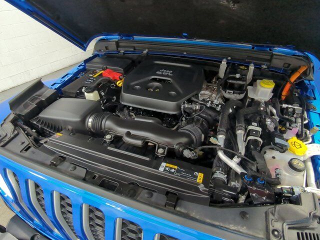 Navigation System,Cold Weather Group,Quick Order Package 29P Sahara,9 Speakers,AM/FM radio: SiriusXM,Radio data system,Radio: Uconnect 4C Nav w/8.4 Display,Air Conditioning,Automatic temperature control,Front dual zone A/C,Rear Window Defroster,Power steering,Power windows,Remote keyless entry,Steering wheel mounted audio controls,Sport Suspension,Traction control,4-Wheel Disc Brakes,ABS brakes,Dual front impact airbags,Dual front side impact airbags,Emergency communication system: SiriusXM Guardian,Front anti-roll bar,Integrated roll-over protection,Low tire pressure warning,Occupant sensing airbag,Rear anti-roll bar,Brake assist,Electronic Stability Control,ParkView Rear Back-Up Camera,Side Steps,Delay-off headlights,Front fog lights,Fully automatic headlights,Panic alarm,Security system,Speed control,Black 3-Piece Hard Top,Front License Plate Bracket,Heated door mirrors,Power door mirrors,Apple CarPlay/Android Auto,Auto-dimming Rear-View mirror,Compass,Driver door bin,Driver vanity mirror,Front reading lights,Garage door transmitter,Heated Steering Wheel,Illuminated entry,Leather Shift Knob,Outside temperature display,Passenger vanity mirror,Premium McKinley Trimmed Seats,Rear reading lights,Rear seat center armrest,Tachometer,Telescoping steering wheel,Tilt steering wheel,Trip computer,Voltmeter,Front Bucket Seats,Heated Front Seats,Split folding rear seat,Freedom Panel Storage Bag,Front Center Armrest w/Storage,Passenger door bin,Alloy wheels,Wheels: 20 x 8 Fully Painted Aluminum,Rear Window Wiper/Washer,Variably intermittent wipers,3.73 Rear Axle Ratio,TRANSMISSION: 8-SPEED AUTO 8P75PH PHEV (STD),QUICK ORDER PACKAGE 29P SAHARA -inc: Engine: 2.0L I4 DOHC DI Turbo PHEV Transmission: 8-Speed Auto 8P75PH PHEV,ENGINE: 2.0L I4 DOHC DI TURBO PHEV (STD),COLD WEATHER GROUP -inc: Heated Steering Wheel Remote Start System Heated Front Seats,HYDRO BLUE PEARLCOAT,BLACK 3-PIECE HARD TOP -inc: Freedom Panel Storage Bag Rear Window Defroster Rear Window Wiper/Washer,SIDE STEPS,FRONT LICENSE PLATE BRACKET,BLACK PREMIUM MCKINLEY TRIMMED SEATS,Turbocharged,Four Wheel Drive,Power Steering,ABS,4-Wheel Disc Brakes,Brake Assist,Brake Actuated Limited Slip Differential,Lithium Ion Traction Battery,Aluminum Wheels,Tires - Front Performance,Tires - Rear Performance,Conventional Spare Tire,Tow Hooks,Tow Hooks,Heated Mirrors,Power Mirror(s),Privacy Glass,Intermittent Wipers,Variable Speed Intermittent Wipers,Rollover Protection Bars,Convertible Soft Top,Power Door Locks,Daytime Running Lights,Automatic Headlights,LED Headlights,Fog Lamps,AM/FM Stereo,Navigation System,Satellite Radio,Bluetooth Connection,HD Radio,Requires Subscription,Premium Sound System,MP3 Capability,Steering Wheel Audio Controls,Auxiliary Audio Input,Premium Sound System,Bluetooth Connection,Driver Adjustable Lumbar,Driver Adjustable Lumbar,Pass-Through Rear Seat,Rear Bench Seat,Adjustable Steering Wheel,Trip Computer,Power Windows,WiFi Hotspot,Keyless Entry,Power Door Locks,Keyless Start,Keyless Entry,Power Door Locks,Universal Garage Door Opener,Cruise Control,Climate Control,Multi-Zone A/C,A/C,Leather Seats,Bucket Seats,Auto-Dimming Rearview Mirror,Driver Vanity Mirror,Passenger Vanity Mirror,Driver Illuminated Vanity Mirror,Passenger Illuminated Visor Mirror,Floor Mats,Navigation System,Smart Device Integration,Power Windows,Power Door Locks,Trip Computer,Security System,Immobilizer,Traction Control,Stability Control,Traction Control,Front Side Air Bag,Telematics,Requires Subscription,Tire Pressure Monitor,Driver Air Bag,Passenger Air Bag,Passenger Air Bag Sensor,Child Safety Locks,Back-Up Camera