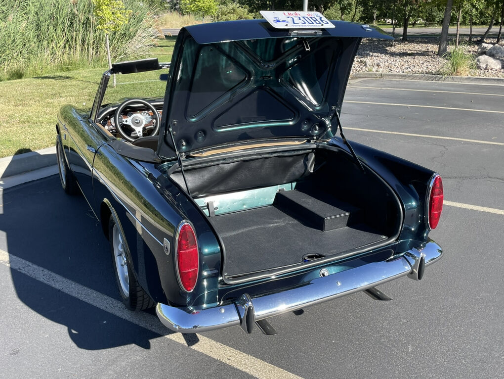 It has a top loader 4-speed, leather interior, mini lite wheels, customer dash and carpets. The convertible top is covered in leather.