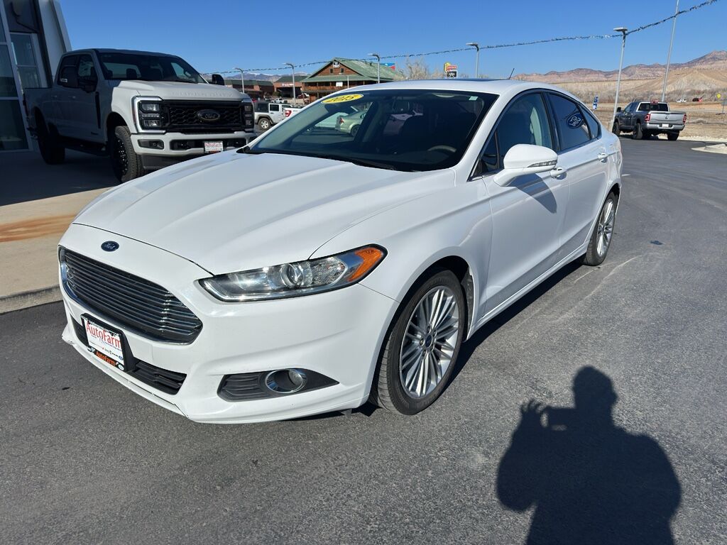 Our dealership has already run the CARFAX report and it is clean. A clean CARFAX is a great asset for resale value in the future. The leather seats in this vehicle are a must for buyers looking for comfort, durability, and style. The state of the art park assist system will guide you easily into any spot. See what's behind you with the back up camera on this vehicle. This mid-size car offers Automatic Climate Control for personalized comfort. Bluetooth technology is built into this vehicle, keeping your hands on the steering wheel and your focus on the road. It is front wheel drive. This unit shines with clean polished lines coated with an elegant white finish. This Ford Fusion has a 4 Cyl, 2.0L high output engine. Set the temperature exactly where you are most comfortable in it. The fan speed and temperature will automatically adjust to maintain your preferred zone climate.