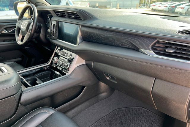 LPO MOLDED SPLASH GUARDS (dealer-installed),CONSOLE FLOOR POWER-SLIDING CENTER WITH DRAWER secure storage manual sliding armrest and cup holders for second row;,TIRES 275/50R22SL ALL-SEASON BLACKWALL,NOT EQUIPPED WITH STEERING COLUMN LOCK see dealer for details (Most vehicles built on or after 7-5-2021 will have (R7N) Not Equipped with Steering Column Lock which deletes (N06) Steering Column Lock.),LPO WHEEL LOCKS (dealer-installed),DARK SKY METALLIC,JET BLACK PERFORATED LEATHER SEATING SURFACES (1st and 2nd rows only.) (Requires interior trim (4AA) Jet Black.),INTERIOR TRIM JET BLACK,SUNROOF POWER PANORAMIC DUAL-PANE tilt-sliding with express-open and close and power sunshade,WHEELS 22 X 9 (55.9 CM X 22.9 CM) BRIGHT MACHINED ALUMINUM WITH PREMIUM PAINT Includes (SFE) wheel locks LPO.),REAR SEAT MEDIA SYSTEM includes dual rear seat-mounted 12.6 diagonal color-touch LCD HD screens Wi-Fi wireless projection capability two 2-channel wireless infrared digital headphones with 2 HDMI ports on the back of the center console; compatible with Bluetooth headphones,REAR AXLE 3.23 RATIO,ENGINE 6.2L ECOTEC3 V8 with Dynamic Fuel Management Direct Injection and Variable Valve Timing includes aluminum block construction (420 hp [313 kW] @ 5600 rpm 460 lb-ft of torque [624 Nm] @ 4100 rpm) (STD),TRANSMISSION 10-SPEED AUTOMATIC electronically controlled with overdrive includes Traction Select System including tow/haul (Most vehicles built on or after 6-7-2021 with a V8 engine will have (NSS) Not Equipped with Automatic Stop/Start which removes Automatic Stop/Start Engine control stop/start disable button and its content.) (STD),DENALI PREFERRED EQUIPMENT GROUP Includes Standard Equipment,LICENSE PLATE FRONT MOUNTING PACKAGE (Included on orders with ship-to states that require a front license plate.),NOT EQUIPPED WITH AUTOMATIC STOP/START SEE DEALER FOR DETAILS (Most vehicles built on or after 6-7-2021 with a V8 engine will have (NSS) Not Equipped with Automatic Stop/Start which removes Automatic Stop/Start Engine control stop/start disable button and its content.),SEATS SECOND ROW BUCKET POWER RELEASE (STD),SEATS FRONT BUCKET (STD),AUDIO SYSTEM 10.2 DIAGONAL GMC INFOTAINMENT SYSTEM WITH NAVIGATION includes multi-touch display AM/FM/SiriusXM stereo Bluetooth streaming audio for music and most phones Android Auto and Apple CarPlay capability for compatible phones advanced voice recognition in-vehicle apps personalized profiles for infotainment and vehicle settings (STD),Rear Parking Aid,Blind Spot Monitor,Lane Departure Warning,Cross-Traffic Alert,Lane Keeping Assist,Front Collision Mitigation,Front Collision Warning,Automatic Highbeams,Keyless Start,Locking/Limited Slip Differential,Four Wheel Drive,Tow Hitch,Active Suspension,Power Steering,ABS,4-Wheel Disc Brakes,Aluminum Wheels,Tires - Front All-Season,Tires - Rear All-Season,Conventional Spare Tire,Conventional Spare Tire,Luggage Rack,Running Boards/Side Steps,Fog Lamps,Heated Mirrors,Power Mirror(s),Integrated Turn Signal Mirrors,Power Folding Mirrors,Privacy Glass,Intermittent Wipers,Variable Speed Intermittent Wipers,Rain Sensing Wipers,Remote Trunk Release,Power Liftgate,AM/FM Stereo,Navigation System,Satellite Radio,MP3 Capability,Bluetooth Connection,Auxiliary Audio Input,Smart Device Integration,Requires Subscription,MP3 Capability,Bluetooth Connection,Auxiliary Audio Input,Premium Sound System,Satellite Radio,Requires Subscription,HD Radio,WiFi Hotspot,Bucket Seats,Bucket Seats,Rear Bucket Seats,Leather Seats,Mirror Memory,Seat Memory,3rd Row Seat,Pass-Through Rear Seat,Heated Front Seat(s),Leather Seats,Heated Front Seat(s),Cooled Front Seat(s),Heated Rear Seat(s),Power Driver Seat,Power Passenger Seat,Driver Adjustable Lumbar,Passenger Adjustable Lumbar,Floor Mats,Adjustable Steering Wheel,Leather Steering Wheel,Heated Steering Wheel,Cruise Control,Steering Wheel Audio Controls,Front Collision Warning,Heads-Up Display,Bluetooth Connection,Smart Device Integration,Power Windows,Power Windows,Power Windows,Power Door Locks,Keyless Entry,Power Door Locks,Remote Engine Start,Cruise Control,Universal Garage Door Opener,MP3 Capability,Auxiliary Audio Input,MP3 Capability,Auxiliary Audio Input,Climate Control,Multi-Zone A/C,A/C,Rear A/C,A/C,Rear A/C,Rear Defrost,Security System,Auto-Dimming Rearview Mirror,Driver Vanity Mirror,Passenger Vanity Mirror,Driver Illuminated Vanity Mirror,Passenger Illuminated Visor Mirror,Automatic Highbeams,Front Collision Mitigation,Front Collision Warning,Traction Control,Stability Control,Brake Assist,Daytime Running Lights,Driver Air Bag,Passenger Air Bag,Front Side Air Bag,Front Head Air Bag,Rear Head Air Bag,Passenger Air Bag Sensor,Telematics,Requires Subscription,Front Collision Mitigation,Rear Parking Aid,Cross-Traffic Alert,Front Collision Warning,Lane Departure Warning,Lane Keeping Assist,Back-Up Camera,Aerial View Display System,Blind Spot Monitor,Driver Restriction Features,Tire Pressure Monitor