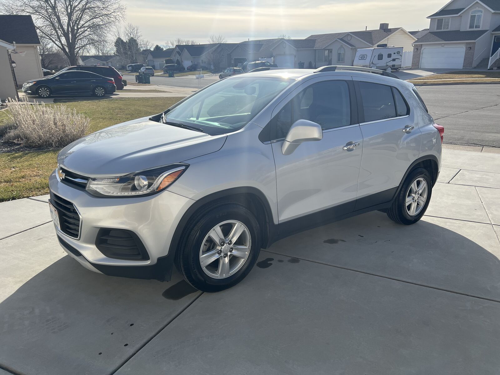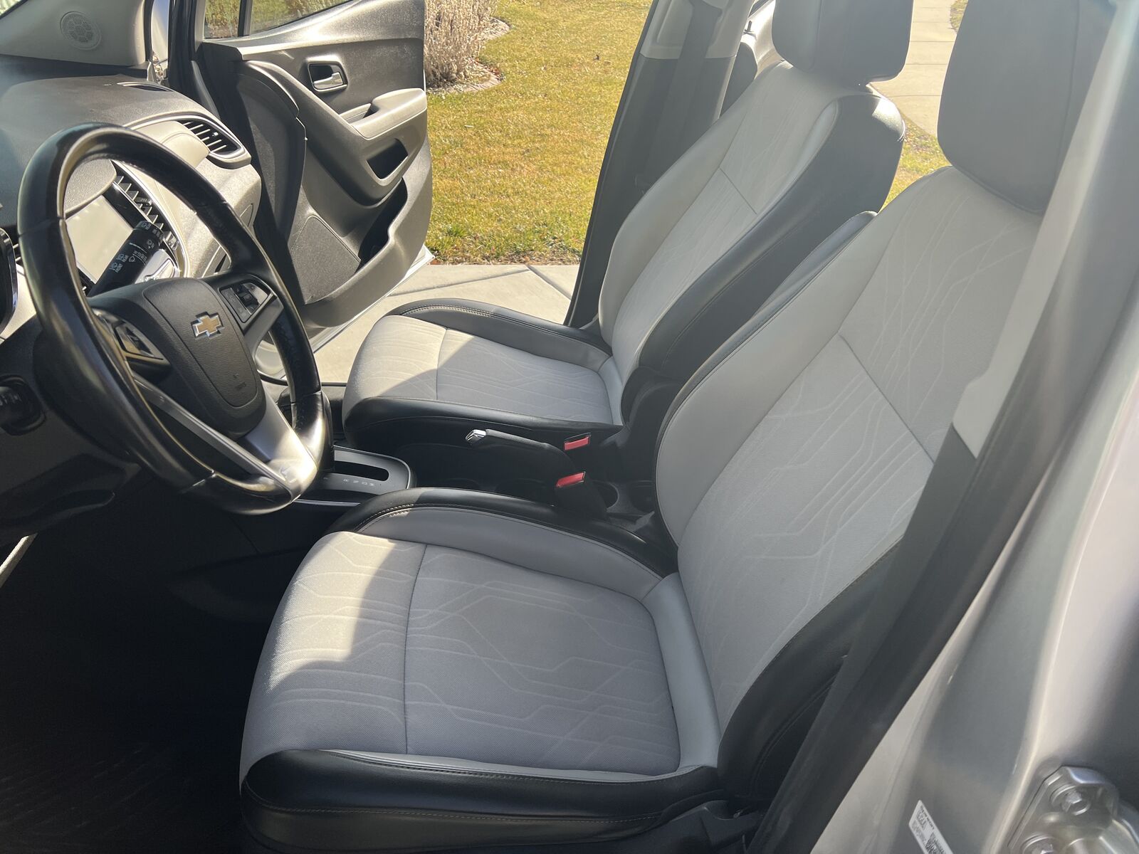 This 2019 Chevy Trax is a very clean, no accidents, mechanically sound, nicely running vehicle with LOTS of life left. New oil change and inspection at the Chevy dealership. Motor is great, transmission is great, brakes are great, wheels are great, all lights work. Tinted windows. Spunky Ecotec 1.4L I-4 DOHC engine with intercooled turbo that gets up quickly. 138 HP with 148 lb/ft torque. 6-speed transmission. Advertised fuel economy is 28 mpg combined city/hwy. Black and light gray cloth and leatherette interior. No rips or tears throughout. Six-way power adjustable driver seat. 1LT trim package. Backup camera with lane change alert. Power door locks, windows, and mirrors. Front bucket seats, 60/40 split rear bench. Rear window wiper. New rubber floor mats front and rear. New carpeted cargo mat.