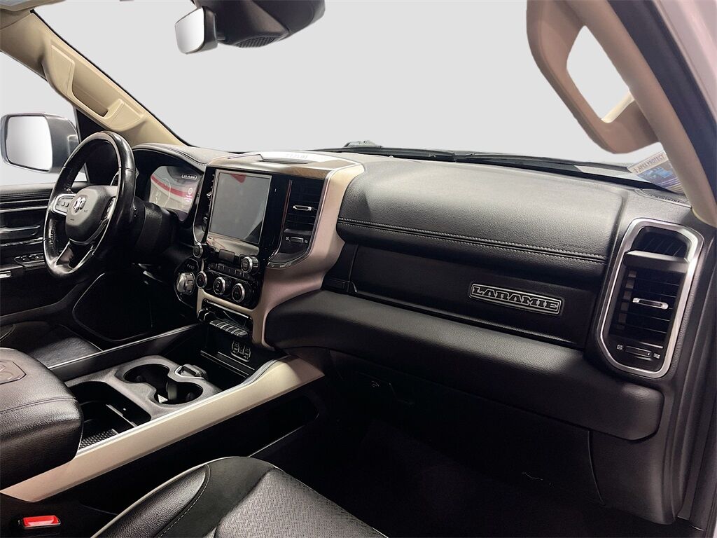 Discover the 2021 RAM 1500 Laramie Crew Cab 4x4, now available at AutoSavvy Woods Cross. This Bright White Clearcoat truck, with only 46,300 miles, blends power and luxury, featuring a robust HEMI 5.7L V-8 engine with 395 horsepower and cylinder deactivation for efficiency. Enjoy the comfort of leather front seat upholstery, heated and ventilated front seats, and a heated steering wheel. Advanced technology includes an 8.4-inch touchscreen display with Apple CarPlay and Android Auto, ensuring seamless connectivity. The Laramie trim offers a premium driving experience with four-wheel drive capability, making it perfect for both city and off-road adventures. The current status of the title is branded, emphasizing AutoSavvy's commitment to transparency and quality assurance. This RAM 1500 is Savvy Certified, having undergone a comprehensive inspection to ensure top-tier reliability and performance. Plus, enjoy peace of mind with our 4-month/4,500 Mile Warranty, safeguarding your investment. Visit AutoSavvy Woods Cross today to experience the perfect fusion of power, technology, and luxury that the 2021 RAM 1500 Laramie Crew Cab 4x4 offers. Discover the AutoSavvy difference, where every vehicle is crafted to exceed your expectations.