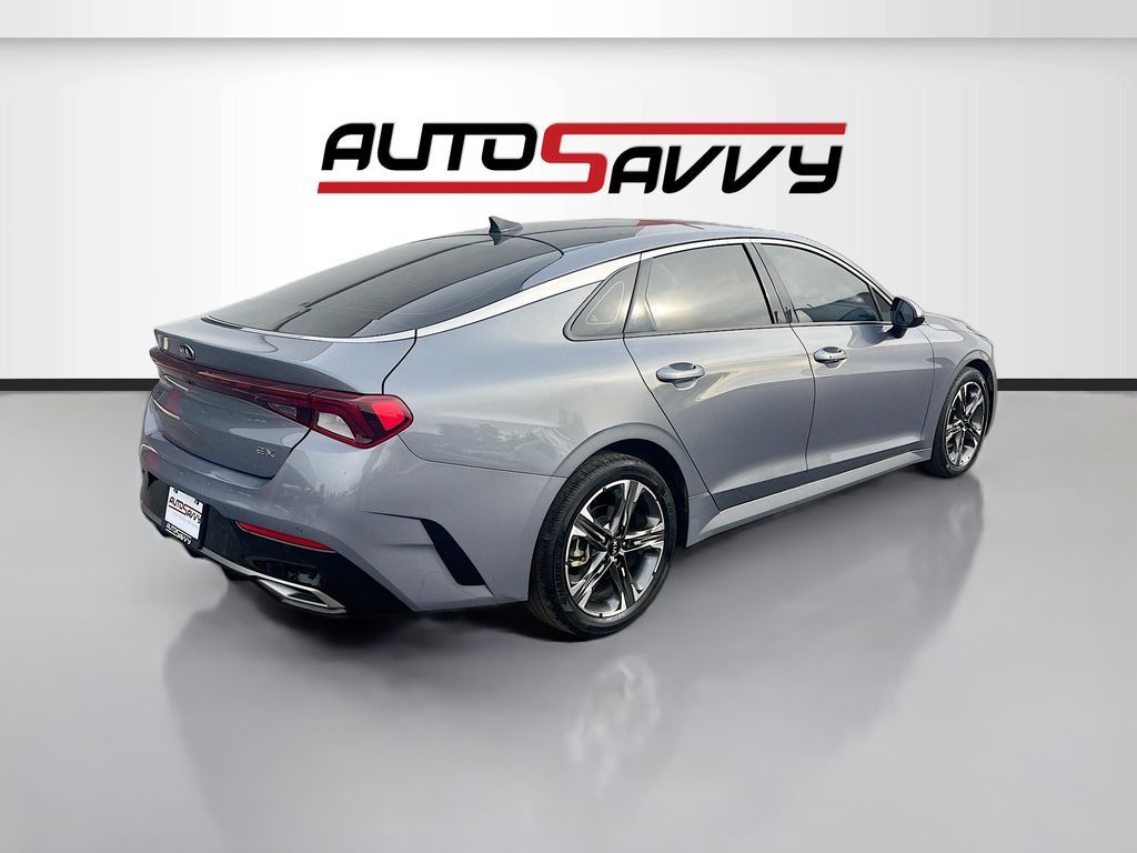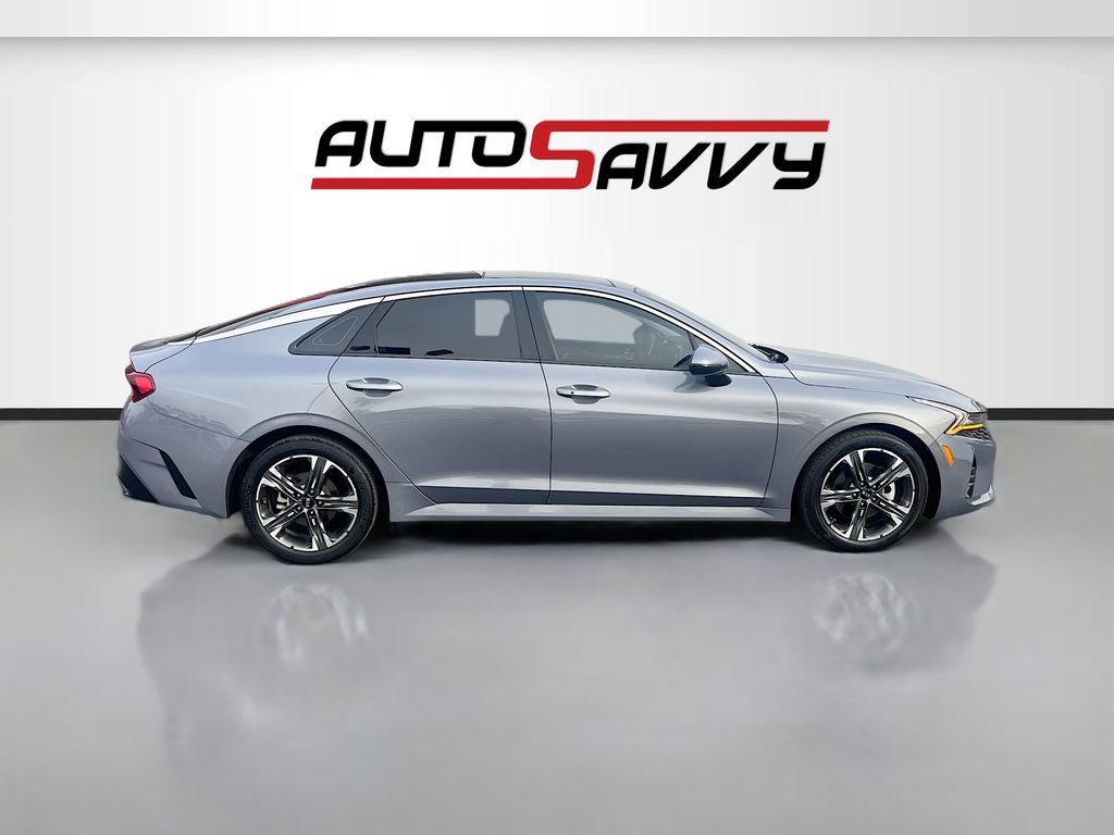 Explore the 2021 Kia K5 EX at AutoSavvy Las Vegas, where sophistication meets performance in this striking sedan. With a mileage of just 68,635, this Savvy Certified vehicle is primed for countless journeys ahead. The K5 boasts a dynamic Gamma-II 1.6L I-4 engine with a turbocharger, delivering 180 horsepower for an exhilarating drive. Enjoy impressive fuel efficiency with 37 MPG on the highway. The Everlasting Silver exterior paired with a sleek black leatherette interior offers a blend of style and comfort. Revel in premium features like heated and ventilated front seats, a panoramic sunroof, and an 8-inch touchscreen with Apple CarPlay and Android Auto for seamless connectivity. The current status of the title is branded, underscoring AutoSavvy's dedication to transparency and integrity. As a Savvy Certified vehicle, this Kia K5 includes the assurance of our 4-month/4,500 Mile Warranty, providing peace of mind for your investment. At AutoSavvy Las Vegas, we pride ourselves on delivering high-quality vehicles and exceptional customer service. Whether you're commuting or embarking on a weekend getaway, the 2021 Kia K5 EX is engineered to elevate your driving experience. Visit us today to explore this remarkable sedan and discover why AutoSavvy is the smart choice for your next vehicle.