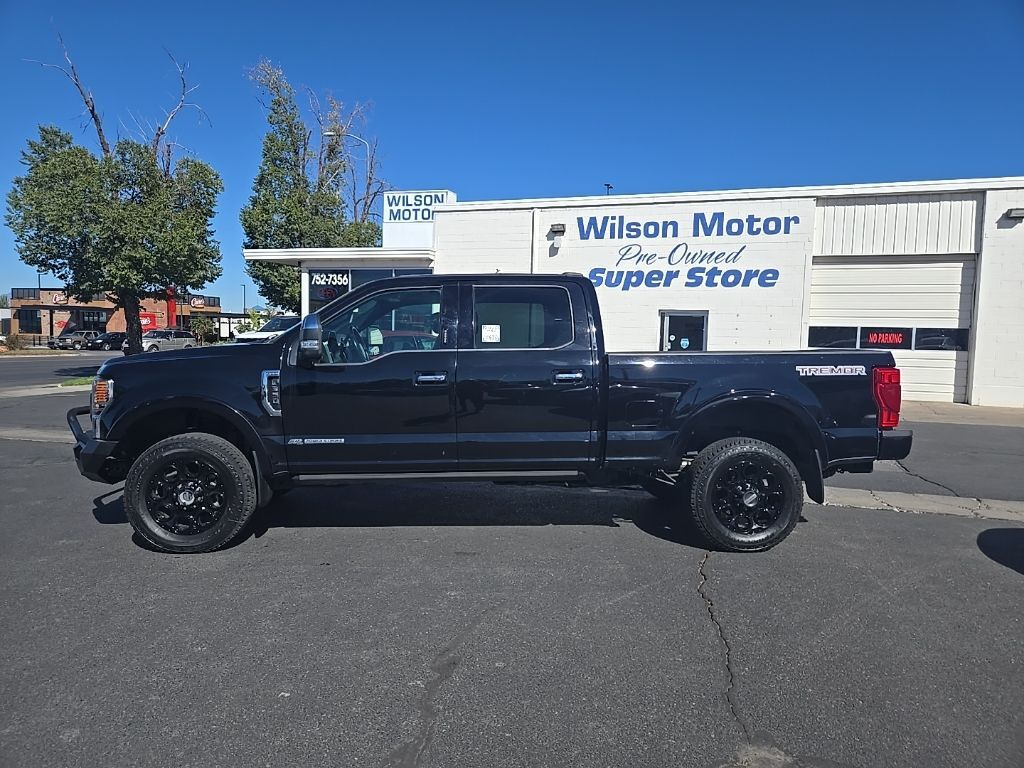 IT'S THAT EASY! Black 2022 Ford F-350SD Platinum 4WD 10-Speed Automatic Power Stroke 6.7L V8 DI 32V OHV Turbodiesel CARFAX CLEAN, LOCAL TRADE, Clean Title, 4WD, 5th Wheel/Gooseneck Hitch Prep Package, Body-Color Wheellip Moldings, Lane Departure Warning System, Navigation system: Connected Navigation, Textured Matte Finish Off-Road Running Boards, Tremor Off-Road Decal, Tremor Off-Road Package, Twin Panel Power Moonroof, Wheels: 18'' Low-Gloss Black Painted Aluminum.