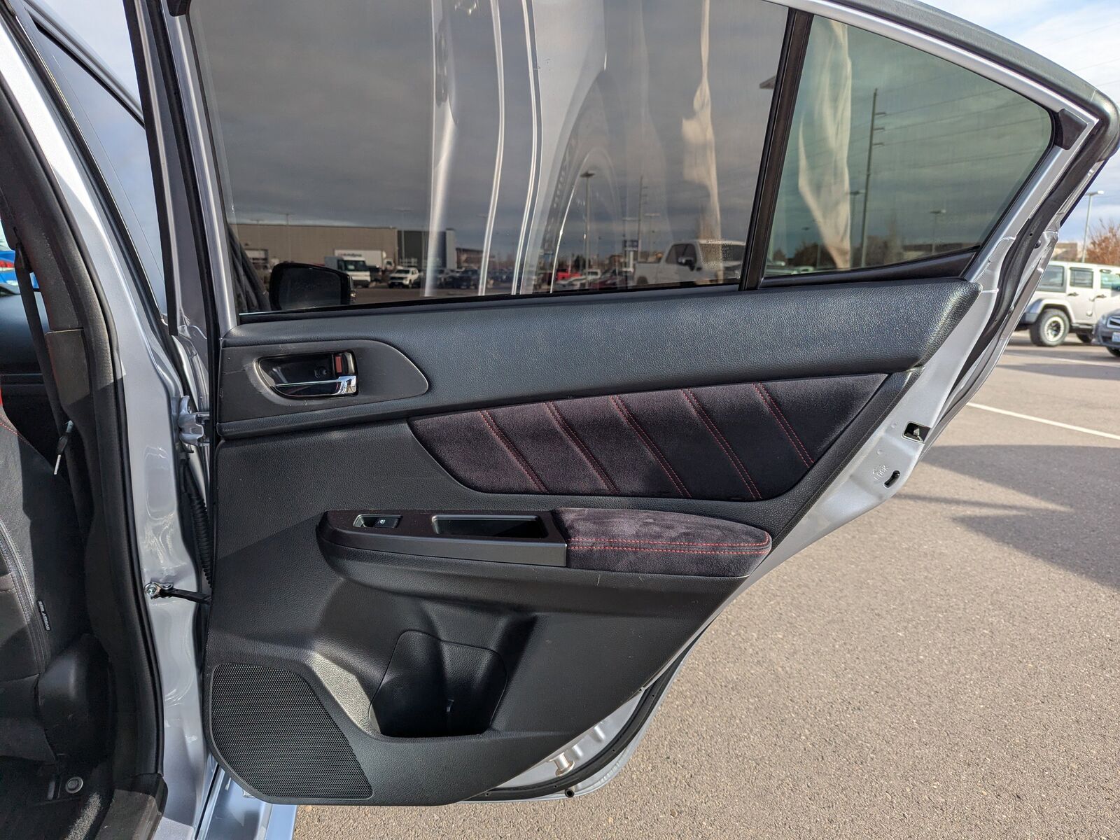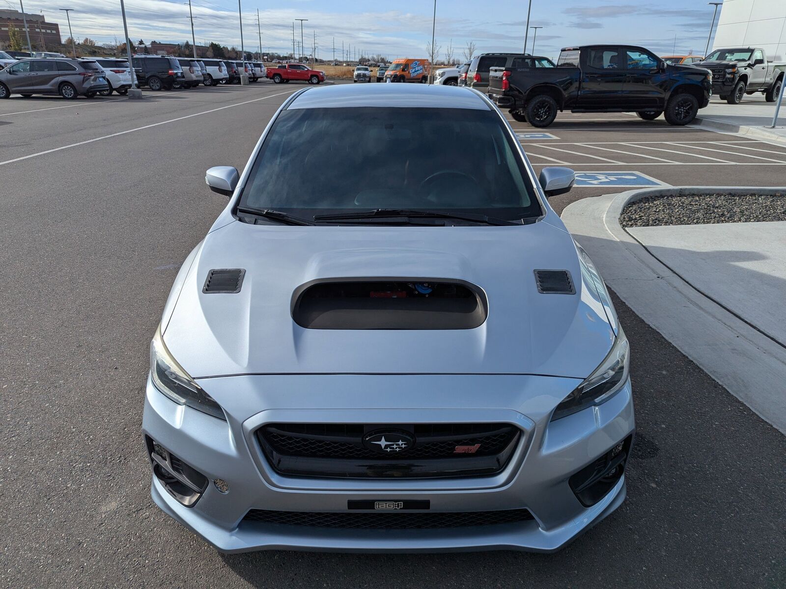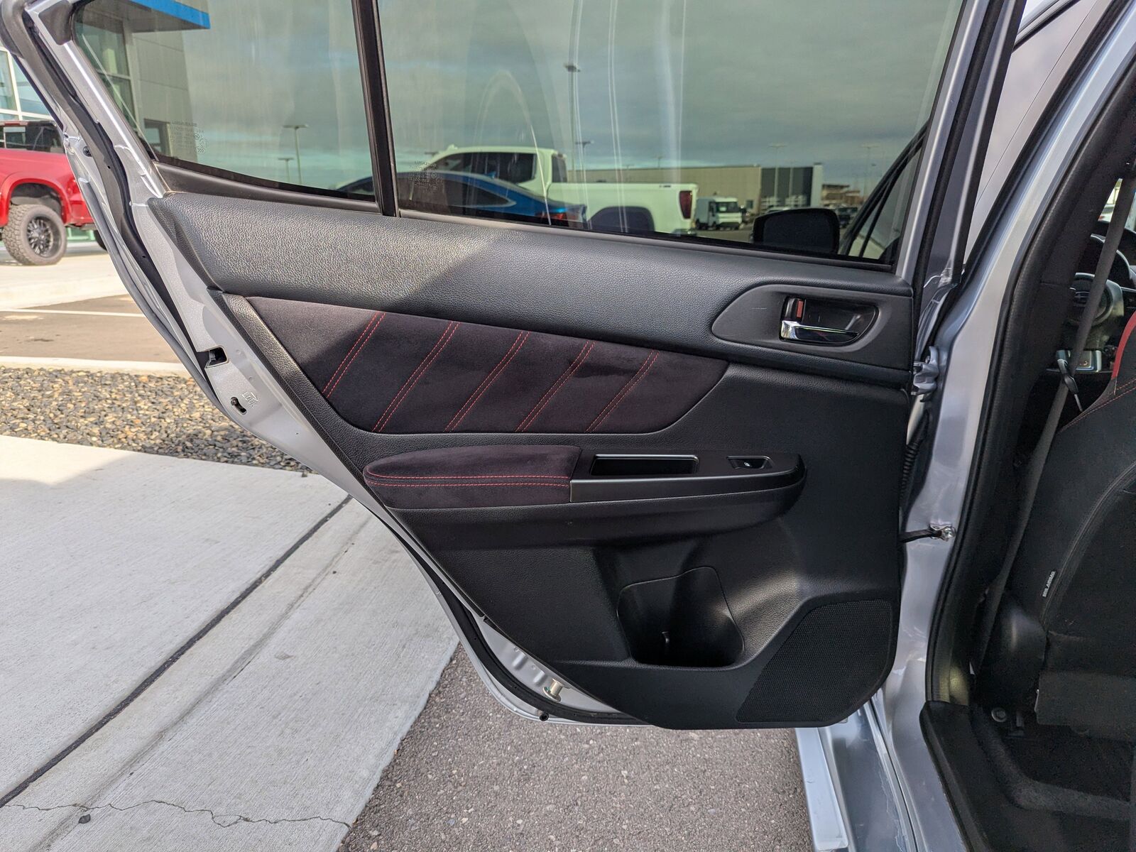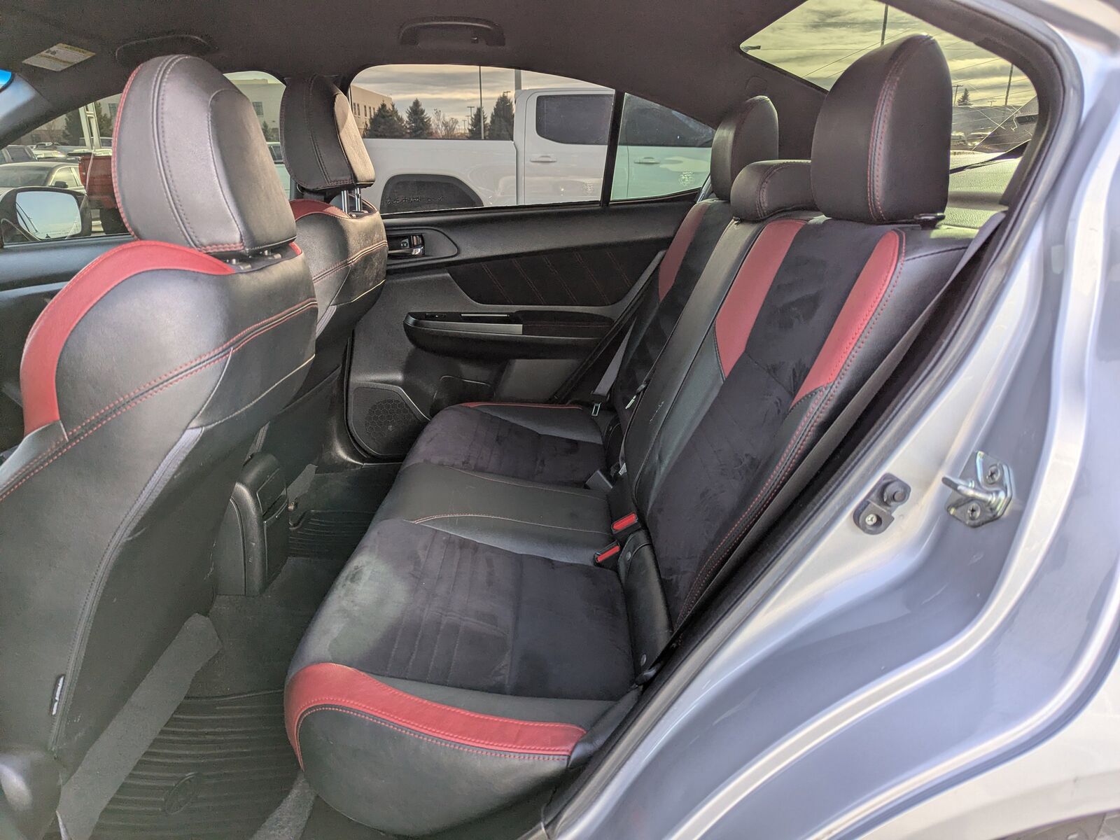 BLACK ALCANTARA UPHOLSTERY W/LEATHER BOLSTERS,CARGO TRAY -inc: Part number J501SFJ400,ICE SILVER METALLIC,STI SHORT THROW SHIFTER (STI) -inc: Part number C1010FG600,ALL WEATHER FLOOR MATS -inc: Part number J501SVA200,ALUMINUM WHEEL LOCKS -inc: Part number B321SFG000,STANDARD MODEL,Turbocharged,All Wheel Drive,Power Steering,ABS,4-Wheel Disc Brakes,Brake Assist,Locking/Limited Slip Differential,Aluminum Wheels,Tires - Front Performance,Tires - Rear Performance,Temporary Spare Tire,Heated Mirrors,Power Mirror(s),Integrated Turn Signal Mirrors,Rear Defrost,Intermittent Wipers,Variable Speed Intermittent Wipers,Rear Spoiler,Daytime Running Lights,Automatic Headlights,Headlights-Auto-Leveling,LED Headlights,Fog Lamps,AM/FM Stereo,CD Player,Satellite Radio,MP3 Capability,Bluetooth Connection,Auxiliary Audio Input,HD Radio,Requires Subscription,Steering Wheel Audio Controls,Bucket Seats,Heated Front Seat(s),Pass-Through Rear Seat,Rear Bench Seat,Adjustable Steering Wheel,Trip Computer,Power Windows,Leather Steering Wheel,Keyless Entry,Power Door Locks,Remote Trunk Release,Cruise Control,Climate Control,Multi-Zone A/C,A/C,Leather Seats,Premium Synthetic Seats,Driver Vanity Mirror,Passenger Vanity Mirror,Driver Illuminated Vanity Mirror,Passenger Illuminated Visor Mirror,Floor Mats,Power Windows,Power Door Locks,Trip Computer,Security System,Immobilizer,Traction Control,Stability Control,Traction Control,Front Side Air Bag,Tire Pressure Monitor,Driver Air Bag,Passenger Air Bag,Front Head Air Bag,Rear Head Air Bag,Passenger Air Bag Sensor,Knee Air Bag,Child Safety Locks,Back-Up Camera