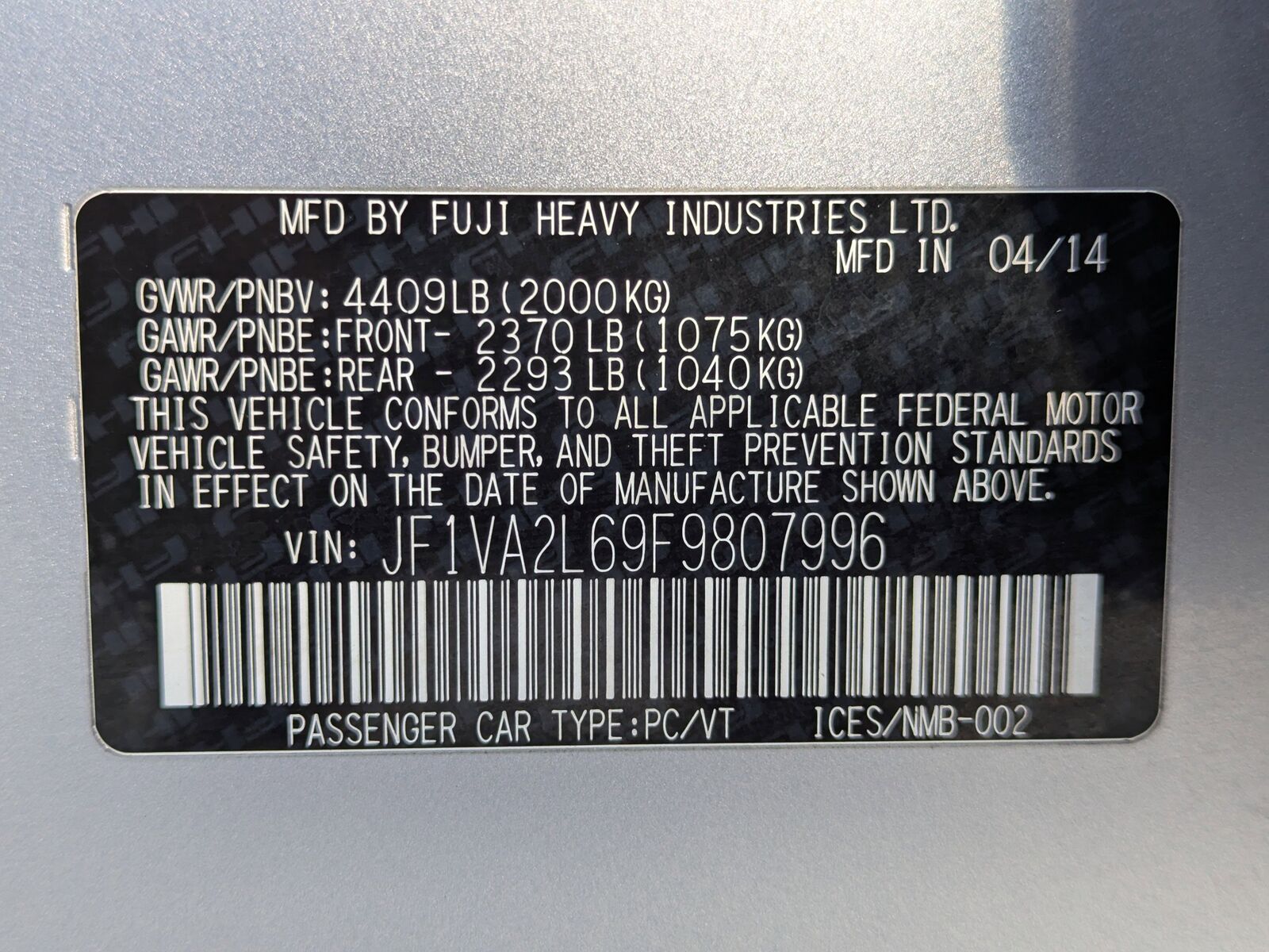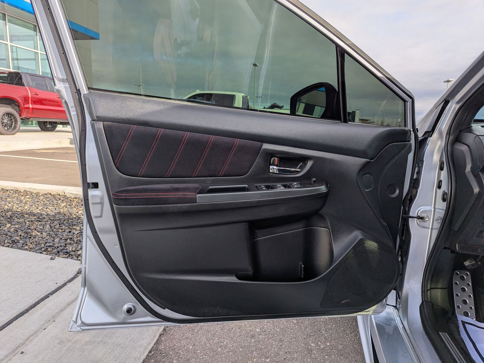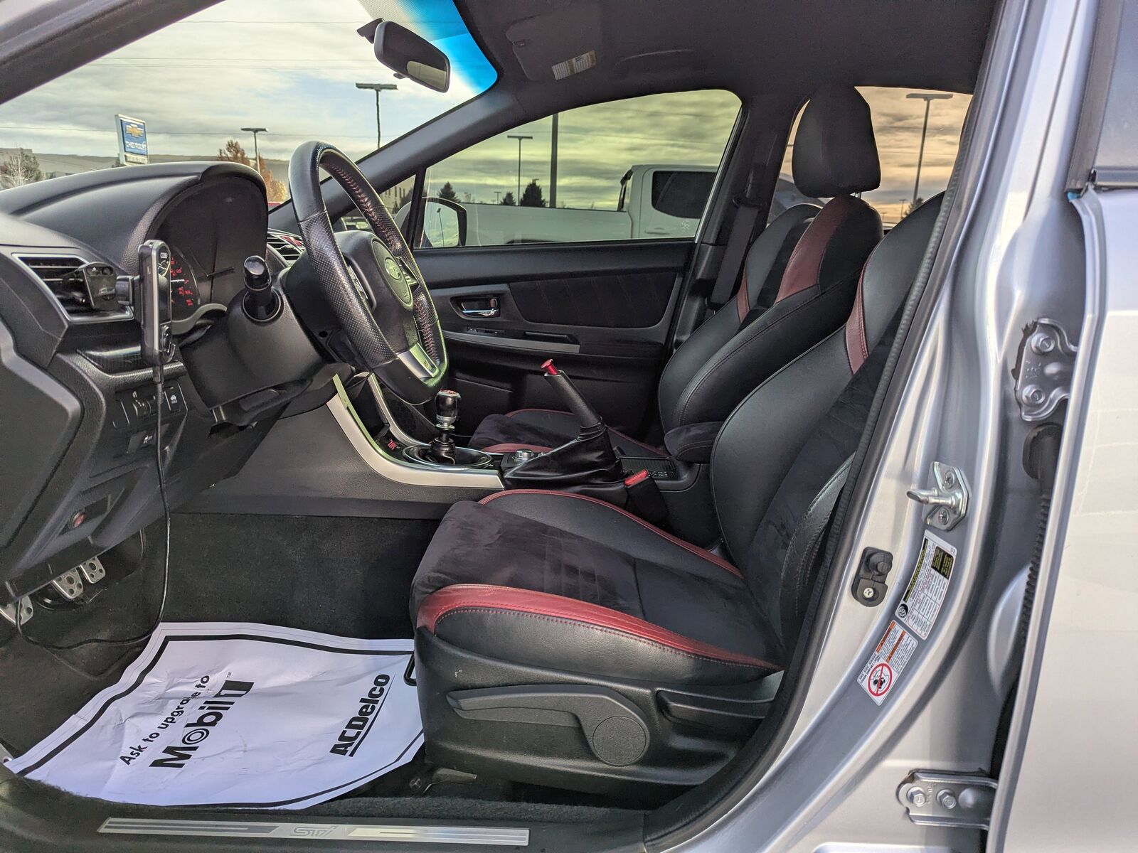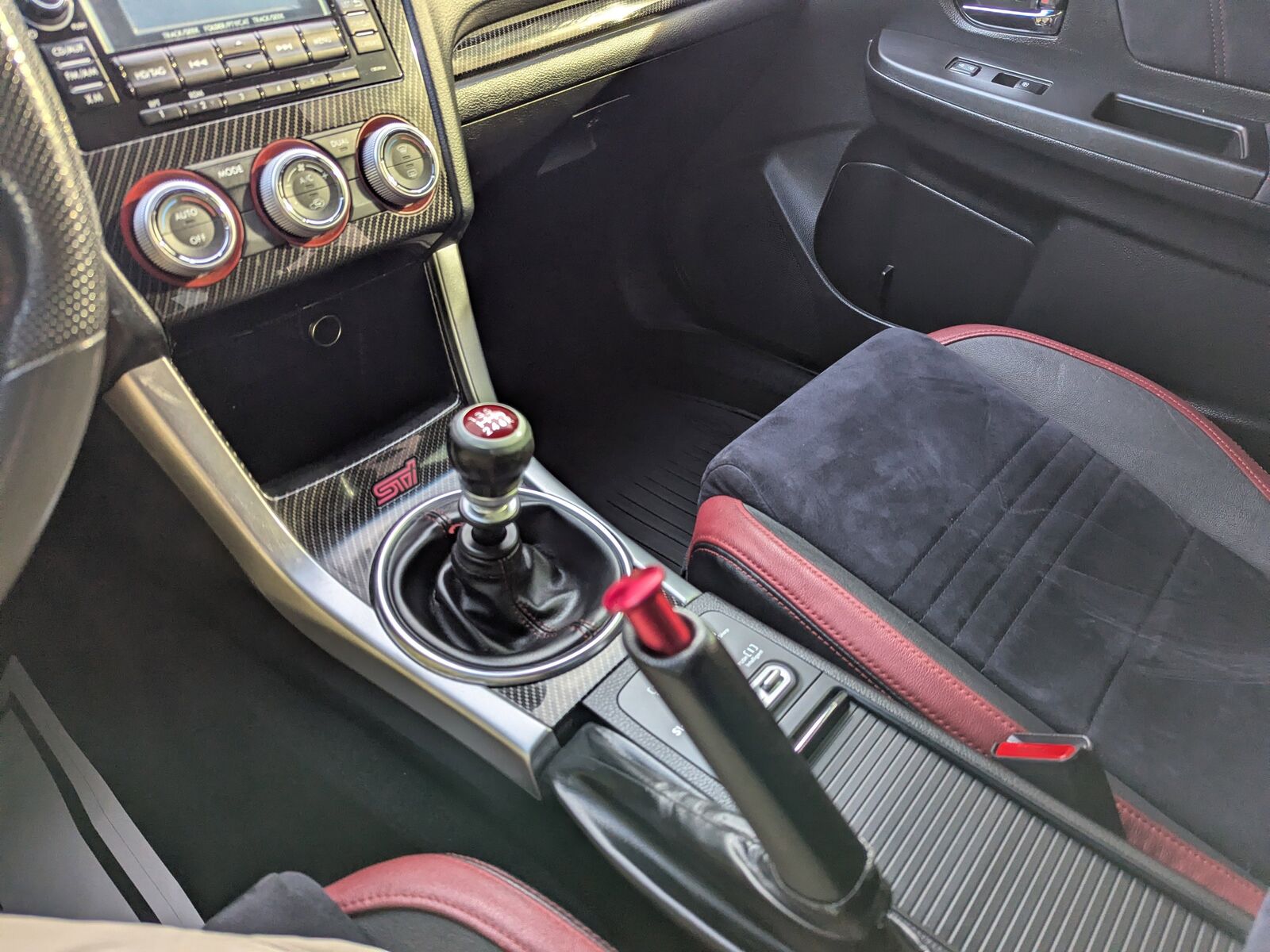BLACK ALCANTARA UPHOLSTERY W/LEATHER BOLSTERS,CARGO TRAY -inc: Part number J501SFJ400,ICE SILVER METALLIC,STI SHORT THROW SHIFTER (STI) -inc: Part number C1010FG600,ALL WEATHER FLOOR MATS -inc: Part number J501SVA200,ALUMINUM WHEEL LOCKS -inc: Part number B321SFG000,STANDARD MODEL,Turbocharged,All Wheel Drive,Power Steering,ABS,4-Wheel Disc Brakes,Brake Assist,Locking/Limited Slip Differential,Aluminum Wheels,Tires - Front Performance,Tires - Rear Performance,Temporary Spare Tire,Heated Mirrors,Power Mirror(s),Integrated Turn Signal Mirrors,Rear Defrost,Intermittent Wipers,Variable Speed Intermittent Wipers,Rear Spoiler,Daytime Running Lights,Automatic Headlights,Headlights-Auto-Leveling,LED Headlights,Fog Lamps,AM/FM Stereo,CD Player,Satellite Radio,MP3 Capability,Bluetooth Connection,Auxiliary Audio Input,HD Radio,Requires Subscription,Steering Wheel Audio Controls,Bucket Seats,Heated Front Seat(s),Pass-Through Rear Seat,Rear Bench Seat,Adjustable Steering Wheel,Trip Computer,Power Windows,Leather Steering Wheel,Keyless Entry,Power Door Locks,Remote Trunk Release,Cruise Control,Climate Control,Multi-Zone A/C,A/C,Leather Seats,Premium Synthetic Seats,Driver Vanity Mirror,Passenger Vanity Mirror,Driver Illuminated Vanity Mirror,Passenger Illuminated Visor Mirror,Floor Mats,Power Windows,Power Door Locks,Trip Computer,Security System,Immobilizer,Traction Control,Stability Control,Traction Control,Front Side Air Bag,Tire Pressure Monitor,Driver Air Bag,Passenger Air Bag,Front Head Air Bag,Rear Head Air Bag,Passenger Air Bag Sensor,Knee Air Bag,Child Safety Locks,Back-Up Camera