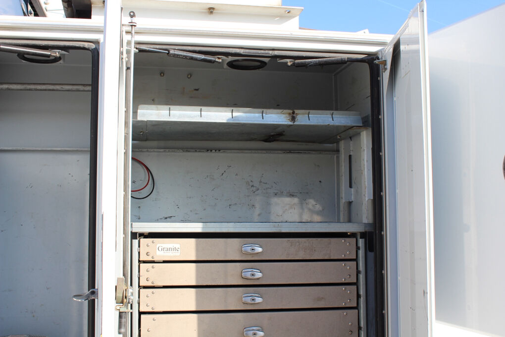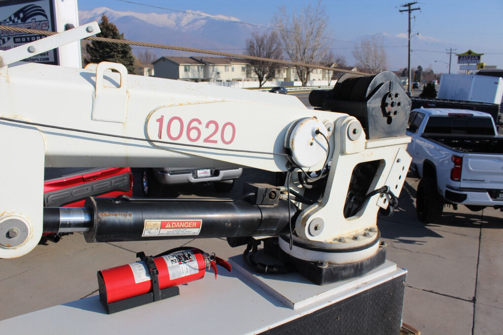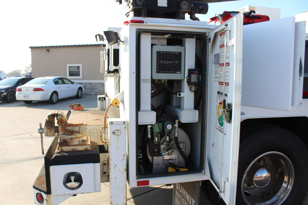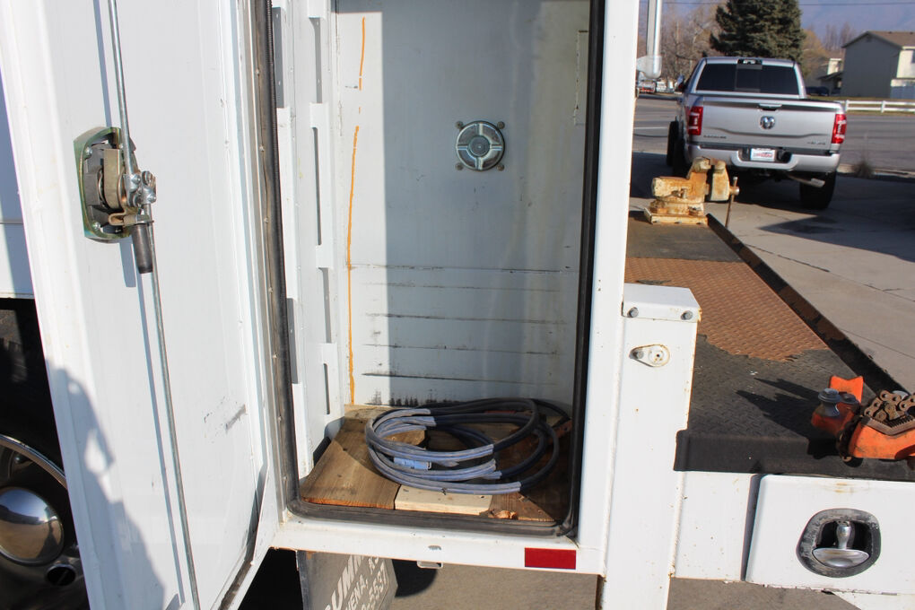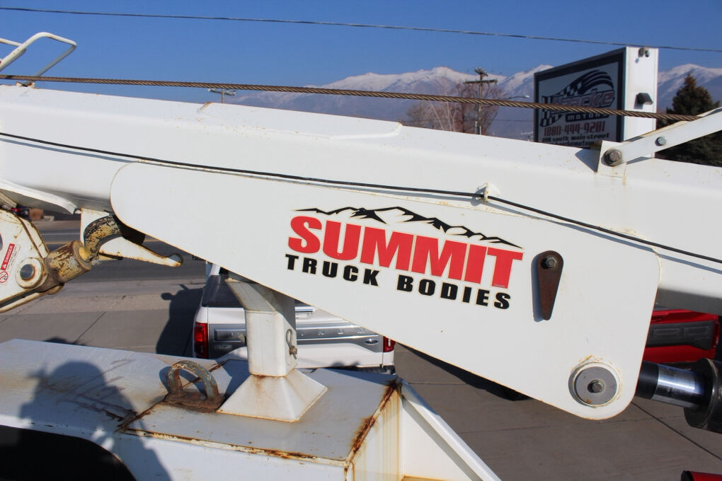 This truck is equipped with a Summit Truck Bodies hydraulic arm, adding valuable lifting and positioning capability for service and material-handling tasks. The rear body is further enhanced by a granite drawer system, offering durable, organized, and secure storage for tools, parts, and equipment—ideal for fleet, utility, or field service operations.
