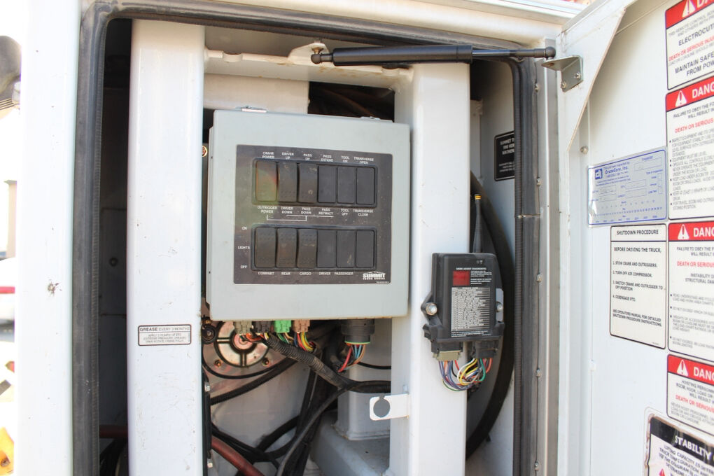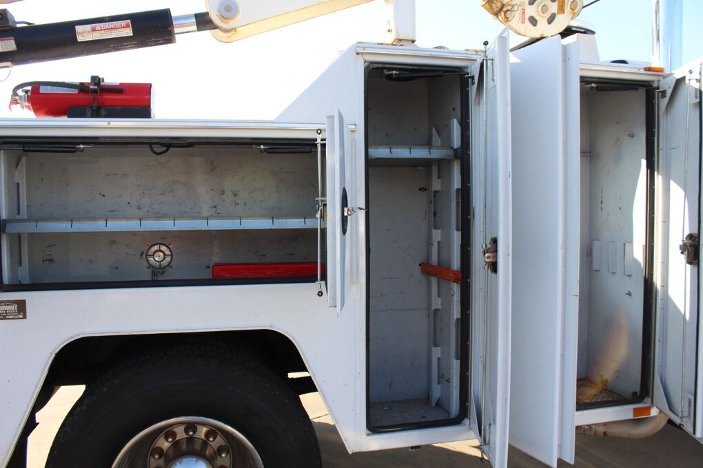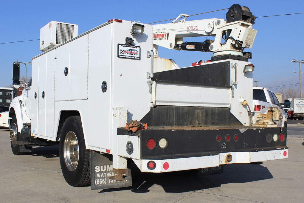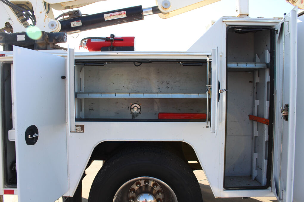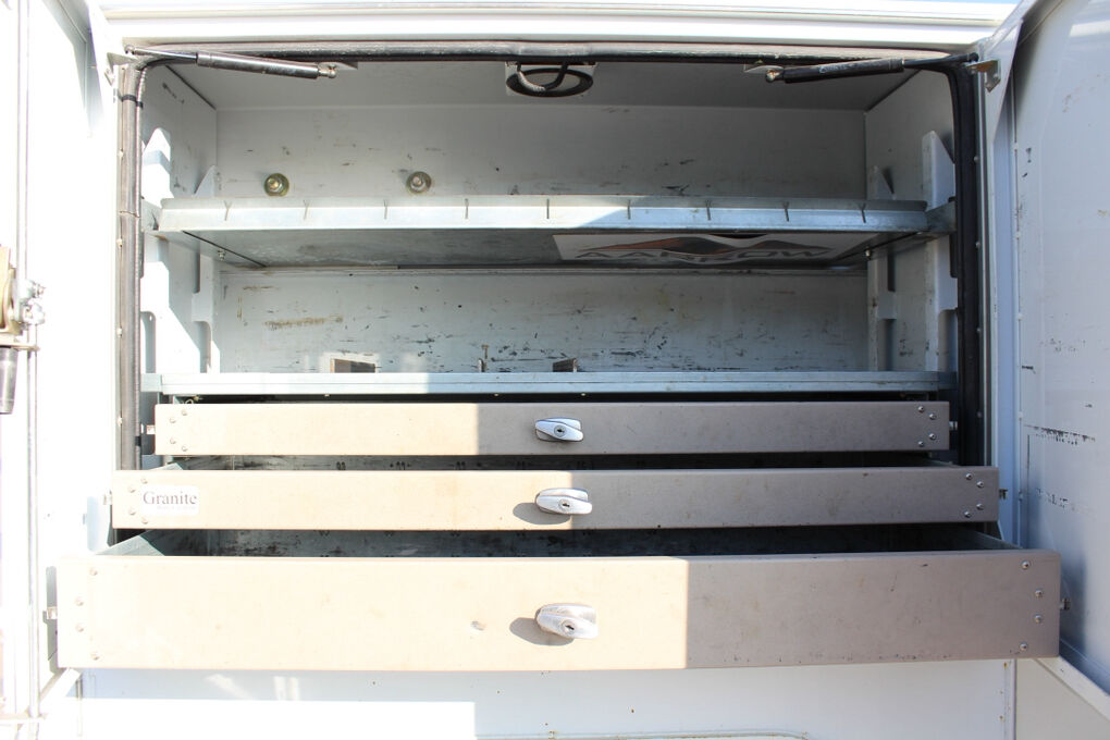 This truck is equipped with a Summit Truck Bodies hydraulic arm, adding valuable lifting and positioning capability for service and material-handling tasks. The rear body is further enhanced by a granite drawer system, offering durable, organized, and secure storage for tools, parts, and equipment—ideal for fleet, utility, or field service operations.