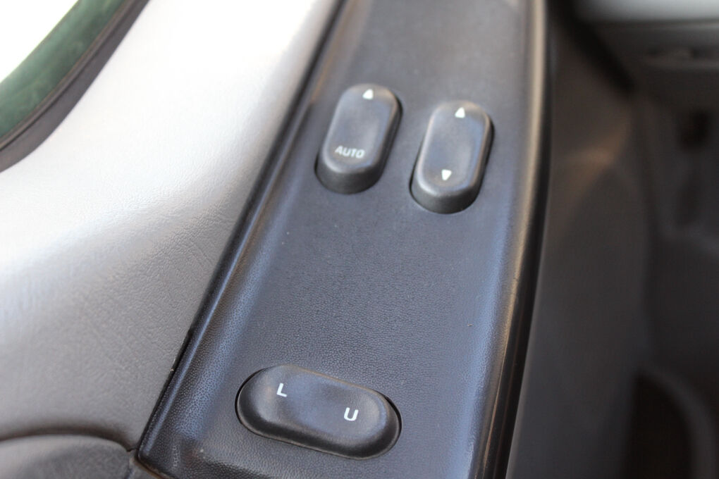 The exterior includes a full-width chrome-plated steel front bumper, sealed beam halogen headlamps, roof marker and clearance lights, dual stainless steel west coast mirrors, and a conventional steel Ford cab designed for long-term commercial use.