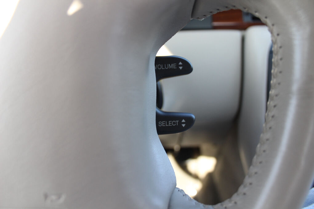 Inside, the cabin is richly appointed with Nuance leather power reclining front bucket seats, heated front seats, memory seating for two drivers, and Zebrano wood trim accents throughout the interior. Dual-zone automatic climate control, power windows with express-down, cruise control, and a leather-wrapped wood steering wheel enhance everyday comfort and convenience. The driver information center and analog instrument cluster provide clear, intuitive vehicle feedback.
