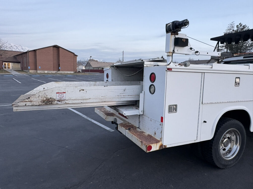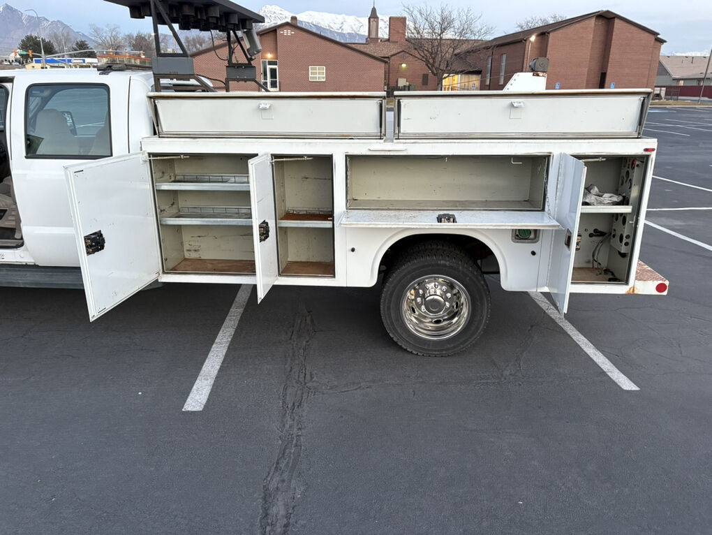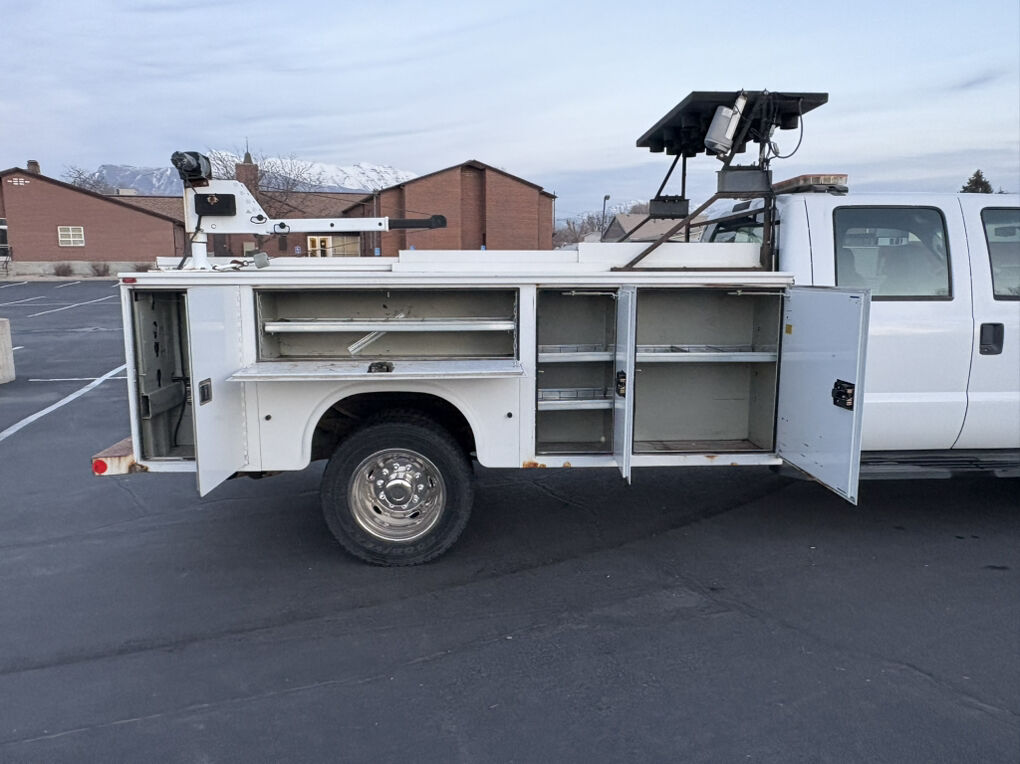 12’ Enclosed Utility bed, with a Crane, roll out tool tray in bed, and roadside Construction strobe lighting, 6.4 Liter Turbo Powerstroke Diesel, Automatic Transmission, Power Windows and Locks,