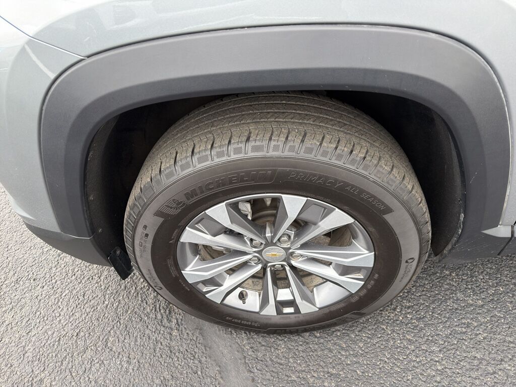 Preferred Equipment Group 2LT: 235/65R17 All-Season Blackwall Tires,Front License Plate Mounting Package,Enhanced Automatic Emergency Braking forward collision mitigation,Front Pedestrian and Bicyclist Braking,5G Wi-Fi Hotspot capable mobile hotspot internet access,Rear Vision Camera rear mounted camera,Lane Keep Assist with Lane Departure Warning,Blind Zone Steering Assist active blind spot system,Reverse Automatic Braking collision mitigation,Adaptive Cruise Control,Brake assist system,Cruise control with steering wheel mounted controls,Integrated navigation system with voice activation,Keyfob remote start,Heated steering wheel,Heated driver and front passenger seats,Primary monitor touchscreen,Part and full-time AWD,1.5L I-4 gasoline direct injection, DOHC, variable valve control, intercooled turbo, regular unleaded, engine with 175HP,1.5L I-4 DOHC,Restricted driving mode/alerts,Rear Pedestrian Alert rear pedestrian detection warning,Intersection Automatic Emergency Braking (I-AEB) System front cross traffic mitigation,Smart key with hands-free access and push button start,Smart device remote start,Push-button,Automatic brake hold,Vehicle tracker with vehicle slowdown,Bluetooth wireless audio streaming,Gauge cluster display size: 11.00,Traffic sign recognition,Full gauge cluster screen,IntelliBeam auto high-beam headlights,Immobilizer,Active noise cancellation,OnStar and Chevrolet connected services capable vehicle integrated emergency SOS system,Bluetooth handsfree wireless device connectivity,Smart device wireless mirroring,Trailer sway control,External memory control,Digital/analog instrumentation display,Configurable instrumentation gauges,StabiliTrak electronic stability control system with anti-roll,Hill start assist,Heated rear wiper park,Rear Seat Reminder rear seat check warning,Rear Park Assist rear parking sensors,LED daytime running lights,Manual reclining rear seats,Active grille shutters,Real-time weather,Manual rear child safety door locks