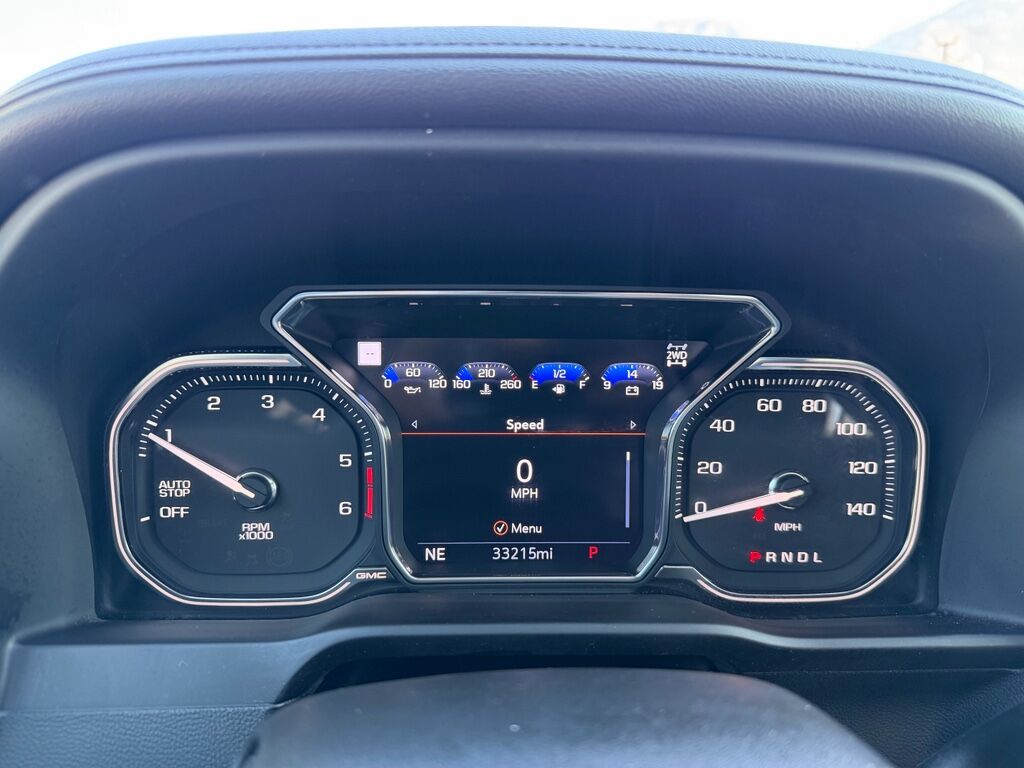 Driver Alert Package I: Ultrasonic Front and Rear Park Assist; Rear Cross Traffic Alert; Lane Change Alert with Side Blind Zone Alert,Driver Alert Package II: Forward Collision Alert; Lane Keep Assist with Lane Departure Warning; Front Pedestrian Braking; Following Distance Indicator; Automatic Emergency Braking; IntelliBeam Automatic High Beam On/off; Adaptive Cruise Control,Preferred Equipment Group 5SA: HD Rear Vision Camera; LED Cargo Area Lighting; Chrome Wheel to Wheel Assist Steps; Remote Vehicle Starter System; 2 USB Ports (1st Row); Power Sliding Rear Window with Rear Defogger; Safety Alert Seat; Hill Descent Control; Electric Rear-Window Defogger; Floor-Mounted Center Console; Theft Deterrent System (unauthorized Entry); Signature Denali Grille; 170 Amp Alternator; 20" X 9" Multi-Dimensional Polished Aluminum Wheels; Auxiliary External Transmission Oil Cooler; Heavy-Duty Air Filter; Compass; Trailering Package; 120-Volt Instrument Panel Power Outlet; Chrome Recovery Hooks; Adaptive Ride Control Suspension; Wireless Charging; Steering Wheel Audio Controls; GMC Connected Access Capable; Universal Home Remote; Color-Keyed Carpeting Floor Covering; OnStar and GMC Connected Services Capable; Power Front Passenger Windows with Express Up/down; 2-Speed Transfer Case; Deep-Tinted Glass; Spray-On Pickup Bed Liner with Denali Logo; Power Rear Windows with Express Down; Integrated Trailer Brake Controller; Premium GMC Infotainment System Radio with Navigation; Power Front Windows with Driver Express Up/down; Manual Tilt-Wheel and Telescoping Steering Column; Rear Dual USB Charging-Only Ports; 275/60R20SL AT BW Tires; Keyless Open and Start; Wi-Fi Hotspot Capable; ProGrade Trailering System; Rear Wheelhouse Liners; 12-Volt Rear Auxiliary Power Outlet; 2 USB Ports; Auto-Locking Rear Differential; Power Door Locks,Power Sunroof,Satin Steel Metallic,Apple CarPlay/Android Auto smart device mirroring,Forward Collision Alert with Automatic Braking,Front Pedestrian Braking,Wi-Fi Hotspot capable mobile hotspot internet access,HD Rear Vision Camera w/Hitch View rear mounted camera,Lane Keep Assist with Lane Departure Warning,Adaptive cruise control,Automatic Emergency Braking predictive brake assist system,Cruise control with steering wheel mounted controls,Ventilated driver and front passenger seats,Integrated navigation system,Keyfob remote start,Heated steering wheel,Heated driver and front passenger seats,Leather front seat upholstery,Primary monitor touchscreen,Rear collision warning,First-row sliding and tilting glass sunroof with express open/close activation sunshade,Driver seat power reclining, lumbar support, cushion tilt, fore/aft control and height adjustable control,AutoTrac part and full-time 4WD,Duramax 3L I-6 diesel direct injection, DOHC, variable valve control, intercooled turbo, diesel, engine with 277HP,Duramax 3L I-6 DOHC,Front wireless smart device charging,Teen Driver restricted driving mode/alerts,Smart key with hands-free access and push button start,Keyfob window control,Push-button,Bluetooth wireless audio streaming,Hitch Guidance vehicle to trailer hitching assist,Blind spot warning,Following Distance Indicator,GMC ProGrade Trailering System trailer light test,GMC ProGrade Trailering System trailer light malfunction warning,GMC ProGrade Trailering System trailer theft alarm,Dual-zone front climate control,IntelliBeam auto high-beam headlights,Immobilizer,Bose speakers,Bluetooth handsfree wireless device connectivity,Trailer brake controller,Trailer Sway Control (TSC) trailer sway control,Trailering Assist Guidelines vehicle and trailer reverse assist with visual graphic guidance only,Premium GMC Infotainment System external memory control,Internet radio capability,6 USB ports,StabiliTrak w/Proactive Roll Avoidance electronic stability control system with anti-roll,Hill Descent Control (HDC),Hill Start Assist (HSA),Leather rear seat upholstery,Automatic climate control