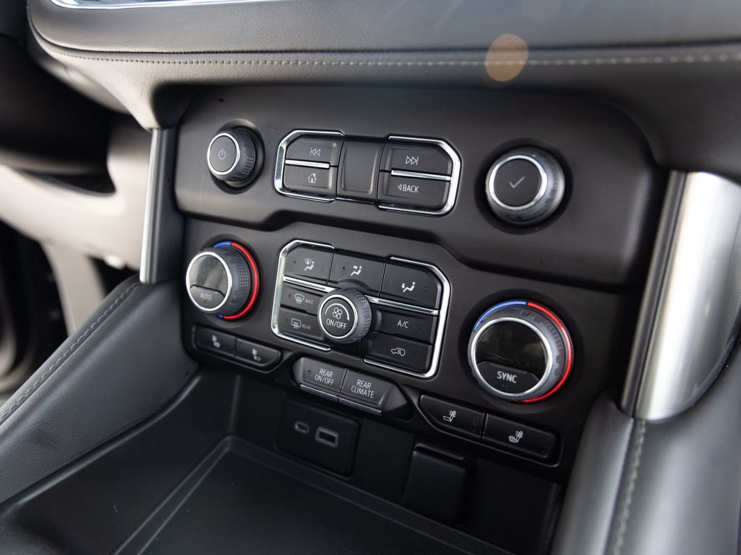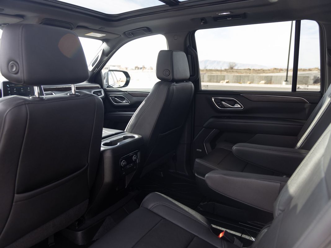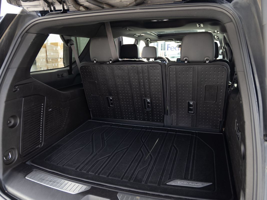 Remote Start,Navigation System,Leather Seats,Heated Seats,Bluetooth,Backup Camera,Roof rails: black,Driver seat: heated,Driver seat power adjustments: height lumbar, reclining, 10,Front headrests: adjustable 2,Front seat type: bucket,Passenger seat: heated,Passenger seat power adjustments: height lumbar, reclining, 10,Rear headrests: adjustable 2,Rear seat folding: split,Rear seat manual adjustments: reclining,Rear seat type: 60-40 split bench,Third row headrests: adjustable 2,Third row seat folding: flat split,Third row seat type: 40-60 split bench,Upholstery: leather-trimmed,Upholstery accents: perforated,ABS: 4-wheel,Braking assist: ,Electronic brakeforce distribution: ,Front brake diameter: 13.5,Front brake type: ventilated disc,Front brake width: 1.18,Power brakes: ,Rear brake diameter: 13.6,Rear brake type: ventilated disc,Rear brake width: 0.79,Alternator: 220 amps,Auxiliary oil cooler: ,Battery: heavy duty maintenance-free,Battery rating: 800 CCA,Battery saver: ,Daytime running lights: LED,Exterior entry lights: approach lamps,Headlights: LED auto delay off, auto high beam dimmer, auto on/off, wiper activated,Taillights: LED,Automatic emergency braking: front front pedestrian,Camera system: rearview,Check rear seat reminder: ,Child safety door locks: ,Child seat anchors: LATCH system,Lane deviation sensors: ,Lane keeping assist: ,Parking sensors: front rear,Pre-collision warning system: audible warning pedestrian detection, visual warning,Programmable safety key: ,Rearview monitor: in dash,Airbag deactivation: occupant sensing passenger,Front airbags: center dual,Side airbags: front,Side curtain airbags: front rear, third row,Side mirror adjustments: manual folding power,Side mirrors: heated,Front wipers: rain sensing variable intermittent,Laminated glass: acoustic windshield,Liftgate window: manual flip-up,Power windows: safety reverse,Rear privacy glass: ,Rear wiper: intermittent with washer,Solar-tinted glass: ,Window defogger: rear,Anti-theft system: alarm vehicle immobilizer,Power door locks: anti-lockout auto-locking,Steering ratio: 15.7,Emergency locking retractors: front rear,Front seatbelts: 3-point,Rear seatbelts: 3-point,Seatbelt force limiters: front,Seatbelt pretensioners: front,Seatbelt warning sensor: front,Third row seatbelts: 3-point,4WD selector: electronic hi-lo,4WD type: part time w/ on demand setting,Axle ratio: 3.23,Drive mode selector: ,Limited slip differential: rear,Front shock type: gas,Front spring type: coil,Front stabilizer bar: ,Front struts: ,Front suspension classification: independent,Front suspension type: upper and lower control arms,Rear shock type: gas,Rear spring type: coil,Rear stabilizer bar: ,Rear struts: ,Rear suspension classification: independent,Rear suspension type: multi-link,Driver assistance app: roadside assistance,Electronic messaging assistance: voice operated with read function,Hands-free phone call integration: voice operated,Navigation data: real time traffic,Navigation system: touch screen display voice operated,Satellite communications: OnStar voice guided directions,Smart device app compatibility: myChevrolet with Connected Access,Smart device app function: maintenance status,Wi-Fi: hotspot,Wireless data link: Bluetooth,Antenna type: diversity mast,Auxiliary audio input: Bluetooth USB, iPod/iPhone, memory card slot,Internet radio app: Pandora,Premium brand: Bose,Radio: AM/FM touch screen display, voice operated,Radio data system: ,Satellite radio: SiriusXM,Speed sensitive volume control: ,Total speakers: 9,Spare tire mount location: underbody,Spare tire size: full-size,Spare wheel type: steel,Tire Pressure Monitoring System: ,Tire type: all terrain,Wheels: aluminum alloy with painted accents,Clock: ,Compass: ,Customizable instrument cluster: ,Digital odometer: ,External temperature display: ,Fuel economy display: MPG range,Gauge: tachometer,Instrument cluster screen size: 12 in.,Multi-function display: ,Trip odometer: ,Warnings and reminders: low battery low fuel level, low oil level, maintenance due,Air filtration: ,Front air conditioning: automatic climate control,Front air conditioning zones: dual,Rear air conditioning: automatic climate control independently controlled,Rear air conditioning zones: single,Armrests: rear center folding with storage,Dash trim: wood,Door sill trim: scuff plate,Door trim: wood,Floor mat material: carpet,Floor material: carpet,Floor mats: front rear,Interior accents: woodgrain,Steering wheel trim: leather,Active grille shutters: ,Door handle color: body-color,Front bumper color: body-color,Grille color: black,Mirror color: body-color,Rear bumper color: body-color,Rear spoiler: roofline,Rear spoiler color: body-color,Rear trunk/liftgate: liftgate power operated, sensor-activated,Running board color: black,Running boards: ,Skid plate(s): front,Window trim: black,Auxiliary transmission fluid cooler: ,Tow hooks: front,Tow/Haul mode: ,Trailer hitch: ,Trailer wiring: 7-pin,Assist handle: front rear,Cargo area light: ,Center console: front console with armrest and storage,Cruise control: ,Cupholders: front rear, third row,Memorized settings: 2 driver driver seat, liftgate,Multi-function remote: panic alarm proximity entry system, trunk release,One-touch windows: 4,Overhead console: front,Power outlet(s): 115V cargo area 115V rear, 12V front, USB front, USB-C cargo area, USB-C front, USB-C rear,Power steering: ,Power windows: lockout button,Push-button start: ,Reading lights: front rear,Rearview mirror: auto-dimming,Remote engine start: ,Steering wheel: tilt and telescopic,Steering wheel mounted controls: audio cruise control, multi-function, phone, voice control,Storage: cargo tie-down anchors and hooks door pockets, front seatback, sunglasses holder,Universal remote transmitter: garage door opener,Vanity mirrors: dual illuminating,Wireless charging station: front,Connected in-car apps: Google POIs Google search, app marketplace integration,Infotainment: Chevrolet Infotainment System,Infotainment s