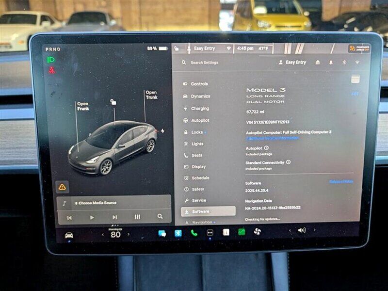 INSTALLED FEATURES: Air filtration, Front air conditioning: automatic climate control, Front air conditioning zones: dual, Rear vents: second row, Airbag deactivation: occupant sensing passenger, Front airbags: dual, Knee airbags: dual front, Side airbags: front, Side curtain airbags: front / rear, Antenna type: element, Auxiliary audio input: Bluetooth / USB, Internet radio app: Slacker / Spotify / TuneIn, Radio: FM / HD radio / touch screen display / voice operated, Radio data system, Subwoofer: 1, Total speakers: 14, Watts: 560, ABS: 4-wheel, Braking assist, Electronic brakeforce distribution, Electronic parking brake, Front brake type: ventilated disc, Power brakes, Rear brake type: ventilated disc, Regenerative braking system, Armrests: rear center with cupholders / rear folding, Center console trim: leatherette, Door trim: faux suede, Floor mat material: carpet, Floor material: cargo area carpet / carpet, Floor mats: front / rear, Heated steering wheel, Interior accents: metallic-tone / wood, Steering wheel trim: leatherette, Adaptive cruise control, Adaptive stop and go cruise control: fully automated, Ambient lighting, Cargo area light, Cargo cover: hard, Center console: front console with armrest and storage, Cupholders: front / rear, Easy entry: power driver seat / power steering wheel, Memorized settings: 10 driver / audio system / driver seat / side mirrors / steering wheel, Multi-function remote: proximity entry system / trunk release / vehicle and key memory, One-touch windows: 4, Power outlet(s): 12V front / USB front / USB-C front / USB-C rear, Power steering: variable/speed-proportional, Power windows: lockout button, Reading lights: front / rear, Rearview mirror: auto-dimming, Steering wheel: power tilt and telescopic, Steering wheel mounted controls: air conditioning / audio / cruise control / multi-function / phone / voice control, Storage: accessory hook / door pockets, Vanity mirrors: dual illuminating, Wireless charging station: front, Door handle color: black, Front bumper color: body-color, Grille color: black, Mirror color: body-color, Rear bumper color: body-color, Rear spoiler: lip, Rear spoiler color: body-color, Rear trunk/liftgate: power operated, Window trim: black, Infotainment screen size: 15 in., Clock, Compass, Digital odometer, External temperature display, Fuel economy display: range, Multi-function display, Trip odometer, Warnings and reminders: low battery, Daytime running lights: LED, Front fog lights: LED, Headlights: auto delay off / auto high beam dimmer / auto on/off / LED / self-leveling, Taillights: LED, Side mirror adjustments: power / power folding / reverse gear tilt, Side mirrors: auto-dimming / heated, 4WD type: full time, Drive mode selector, Electric charge cord: 240 volt, Electric motor battery type: lithium ion, Electric motor charger connector: Tesla (SAE J3400), Electric motor charging time (240V): 10 hours, Electric motor miles per charge: 334, EV battery capacity: 82 kWh, EV on-board charger rating: 11.5 kW, Moonroof / Sunroof: panoramic, Automatic emergency braking: front / front pedestrian, Automatic hazard warning lights, Blind spot safety: sensor/alert, Camera system: front / rearview, Child safety door locks, Child seat anchors: LATCH system, Crumple zones: front, Dash camera: front recording / rear recording / side recording, Driver attention alert system, Emergency interior trunk release, Impact sensor: battery disconnect / door unlock / post-collision safety system, Lane deviation sensors, Lane keeping assist, Parking sensors: front / rear, Pedestrian safety sound generation, Pre-collision warning system: audible warning / pedestrian detection / visual warning, Rearview monitor: in dash, Traffic sign recognition: adaptive speed limiting, Emergency locking retractors: front / rear, Front seatbelts: 3-point, Rear seatbelts: 3-point, Seatbelt force limiters: front / rear, Seatbelt pretensioners: front / rear, Seatbelt warning sensor: front, Driver seat: heated, Driver seat power adjustments: 12 / 4-way power lumbar / height / reclining, Front headrests: 2 / integrated, Front seat type: bucket, Passenger seat: heated, Passenger seat power adjustments: 12 / 4-way power lumbar / height / reclining, Rear headrests: 3 / fixed, Rear seat: heated, Rear seat folding: split, Rear seat type: 60-40 split bench, Upholstery: leatherette, Anti-theft system: alarm / perimeter alarm / vehicle immobilizer, Power door locks: anti-lockout / auto-locking, Hill holder control, Stability control, Traction control, Front shock type: twin-tube gas, Front spring type: coil, Front stabilizer bar, Front struts, Front suspension classification: independent, Front suspension type: double wishbone, Rear shock type: twin-tube gas, Rear spring type: coil, Rear stabilizer bar, Rear struts, Rear suspension classification: independent, Rear suspension type: multi-link, Driver assistance app: roadside assistance, Electronic messaging assistance: voice operated, Hands-free phone call integration: voice operated, Navigation data: real time traffic / send destination to vehicle, Navigation system: over-the-air map updates (OTA) / touch screen display / voice operated, Smart device app compatibility: Tesla App, Smart device app function: camera system display / horn/light operation / lock operation / maintenance scheduling / maintenance status / phone as a key / security event/collision alert / vehicle location / window operation, Wi-Fi: hotspot compatible, Wireless data link: Bluetooth, Tire Pressure Monitoring System, Wheel covers: full, Wheels: aluminum alloy, Front wipers: rain sensing / speed sensitive / variable intermittent, Power windows: remotely operated / safety reverse, Tinted glass, Window defogger: rear