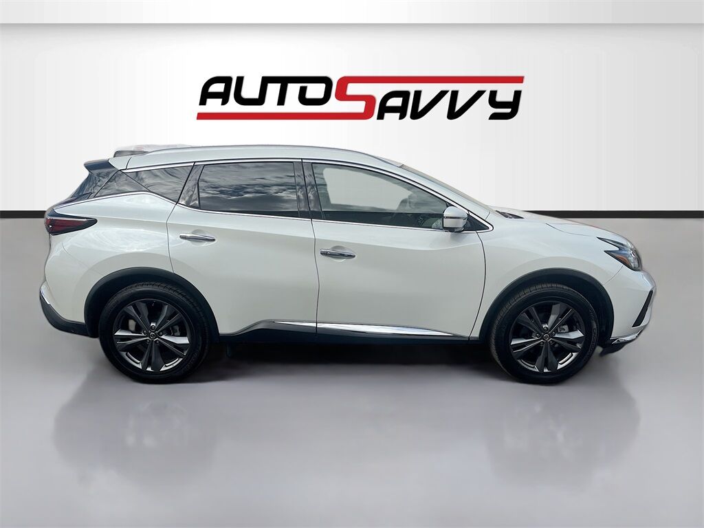 Experience luxury and power with the 2021 Nissan Murano Platinum, now available at AutoSavvy Las Vegas. This sophisticated sport utility vehicle boasts a stunning Pearl White Tricoat exterior paired with a plush Cashmere interior featuring semi-aniline leather upholstery. Powered by a robust 3.5L V-6 engine delivering 260 horsepower, this Murano ensures a smooth and dynamic drive with its CVT with Xtronic transmission. With only 44,174 miles on the clock, this vehicle promises longevity and reliability. Enjoy top-tier features like a panoramic sunroof, heated and ventilated front seats, and a premium Bose audio system with 11 speakers. Stay connected with NissanConnect, featuring Apple CarPlay, Android Auto, and an integrated navigation system. Safety is paramount with advanced technologies such as blind spot monitoring, adaptive cruise control, and automatic emergency braking. The current status of the title is branded, reflecting AutoSavvy's commitment to transparency and integrity. As a Savvy Certified vehicle, this 2021 Nissan Murano Platinum comes with the assurance of our 4-month/4,500 Mile Warranty, providing peace of mind for your investment. At AutoSavvy Las Vegas, we pride ourselves on delivering high-quality vehicles and exceptional customer service. Whether you're navigating city streets or embarking on a road trip, the 2021 Nissan Murano is engineered to elevate your driving experience. Visit us today to explore this exceptional SUV and discover why AutoSavvy is the smart choice for your next vehicle.
