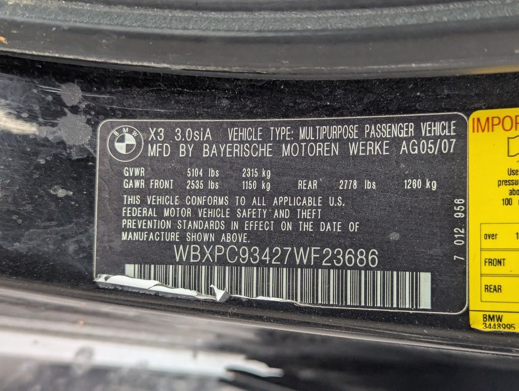 Black 2007 BMW X3 3.0si AWD 6-Speed Automatic with Steptronic 3.0L I6 DOHC 24V 6-Speed Automatic with Steptronic.