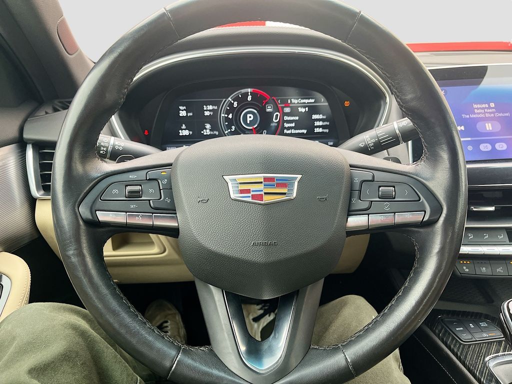 Explore the 2023 Cadillac CT5 Premium Luxury at AutoSavvy Windsor, a sleek sedan that epitomizes sophistication and performance. With just 24,418 miles on the odometer, this Black Raven beauty is powered by a formidable 3.0L V-6 twin-turbo engine, delivering an impressive 335 horsepower. Enjoy a smooth and dynamic drive with its 10-speed automatic transmission and rear-wheel-drive configuration. The CT5 is designed for both comfort and cutting-edge technology, featuring a luxurious Sahara Beige interior with leather seating, a 12-inch HD color driver cluster, and a premium Bose 15-speaker sound system. Stay connected with Apple CarPlay and Android Auto, while advanced safety features like Adaptive Cruise Control, Blind Spot Monitor, and Lane Departure Warning ensure peace of mind on every journey. The current status of the title is branded, underscoring AutoSavvy Windsor's commitment to transparency and quality. As a Savvy Certified vehicle, this Cadillac CT5 comes with a 4-month/4,500-mile warranty, offering additional peace of mind. It has undergone a comprehensive inspection to meet high safety and performance standards, ensuring it is in excellent condition. Visit AutoSavvy Windsor today to experience this exceptional sedan and discover why the 2023 Cadillac CT5 Premium Luxury is the ideal choice for those seeking a blend of elegance, power, and modern technology. Whether you're navigating city streets or embarking on a long road trip, this CT5 promises a comfortable and exhilarating driving experience.