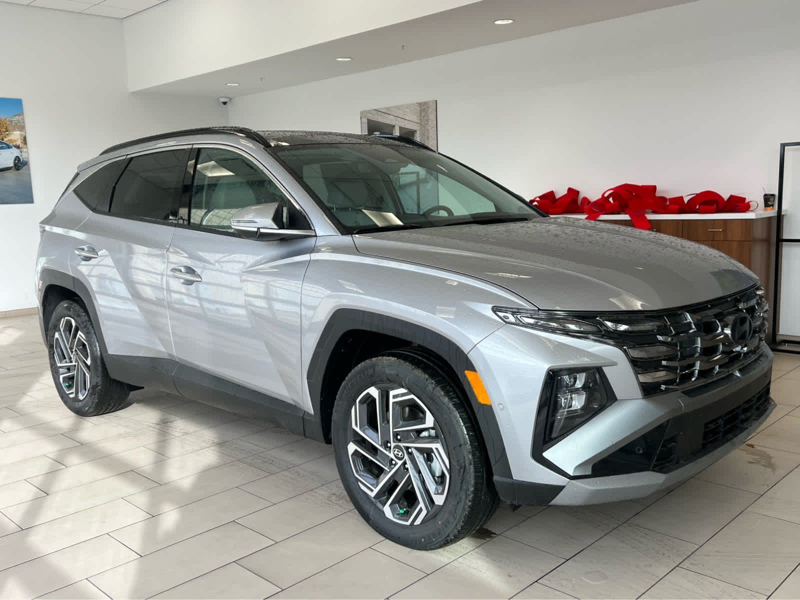 Leather Seats, Navigation, Sunroof, Panoramic Roof, All Wheel Drive, Power Liftgate, Heated Driver Seat, Heated Rear Seat. Rear Spoiler, MP3 Player, Keyless Entry, Privacy Glass. Hyundai Limited with Shimmering Silver exterior and Gray interior features a 4 Cylinder Engine with 231 HP at 5500 RPM*.