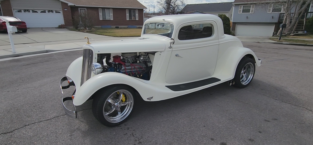 All New 1934 Ford 3 window coupe, 302 V8 / C4 auto trans. 9 in. Ford diff. 1980 fiber CMC body, TCI boxed frame, 11" front disc brks. KYB shocks, 11" Rear drum brks. Air shocks, coils, 4 link. Mustang 2 rac n pinion ster. Boyd Codington 17in wheels, Blu tooth sound system 4, 6x9 spkrs. JL amp. Ready for it's First inspection, title and owner, all books and papers. No trades, serious buyers only need contact me. 8018604359