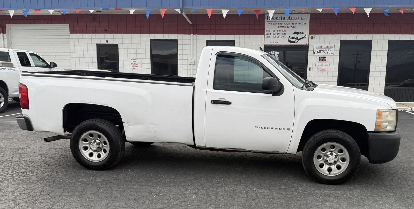 2007 CHEVROLET SILVERADO 1500 REG CAB 2WD LONGBED. 4.8 V8 WITH SMOOTH SHIFTING AUTOMATIC TRANSMISSION. CLEAN TITLE. GOOD AUTOCHECK/CARFAX. SERVICED WITH NEW OIL AND FILTER. NEW WINDSHIELD JUST INSTALLED. PASSED IM INSPECTION AND IS READY TO GO. OPTIONS INCLUDE PS,PB,TILT, AM/FM/STEREO, FACTORY TOW PACKAGE. DECENT TIRES. GREAT WORK TRUCK TO DO WHATEVER YOU NEED IT TO DO. PRICED TO SELL AT ONLY $4200.00 CALL SCOTT AT 801-891-3914 OR MIKE AT 801-891-3913