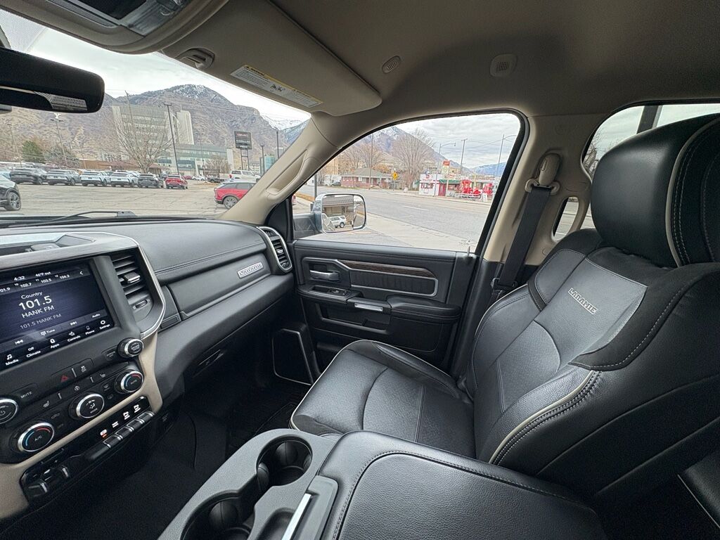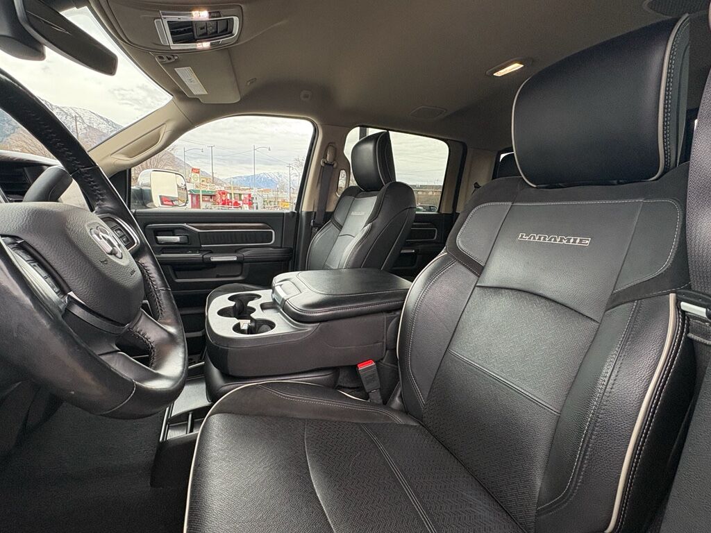 Quick Order Package 2HH Laramie,Anti-Spin Differential Rear Axle,Billet Silver Metallic CC,Apple CarPlay/Android Auto smart device mirroring,Keyfob remote start,Heated steering wheel,Heated driver and front passenger seats,Simulated suede and leather front seat upholstery,Driver seat with 8-way directional controls,Front passenger seat with 8-way directional controls,8.4 inch primary display,Mobile hotspot internet access,ParkView rear mounted camera,Brake assist system,Cruise control with steering wheel mounted controls,Primary monitor touchscreen,Driver seat power reclining, lumbar support, cushion tilt, fore/aft control and height adjustable control,Part-time 4WD,Cummins 6.7L I-6 diesel direct injection, VVT intercooled turbo, diesel, engine with 370HP,Cummins 6.7L I-6,Keyless Enter 'N Go with hands-free access and push button start,Push-button,Wireless audio streaming,Dual-zone front climate control,Sentry Key immobilizer,Alpine speakers,Active noise cancellation,Trailer brake controller,Trailer sway control,Uconnect external memory control,Internet radio capability,9 USB ports,Electronic stability control system with anti-roll,Hill start assist,Automatic climate control,ParkSense front and rear parking sensors,LED daytime running lights,LED brake lights,LED front fog lights,Leather steering wheel,Easy lower tailgate,Active grille shutters,Manual rear child safety door locks,Mobile app access,Illuminated front beverage holders,Heated driver and passenger side door mirrors,Power folding door mirrors,Manual tilting steering wheel,Capless fuel filler,Metallic paint,Chrome hub wheel covers,Manual extendable trailer mirrors,Power adjustable pedals